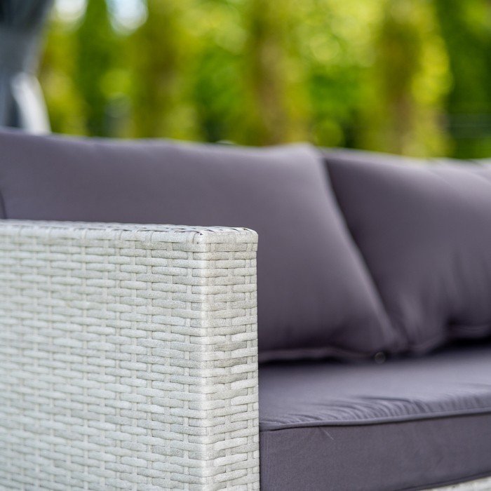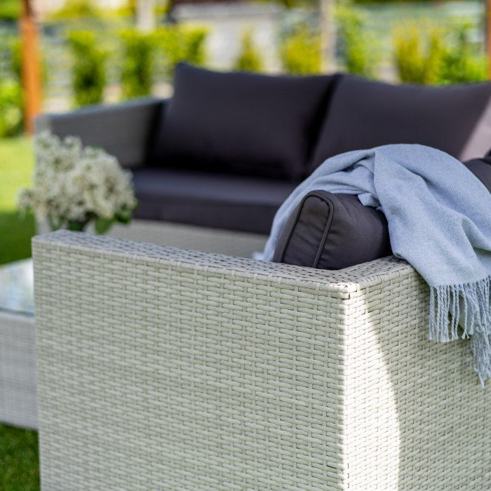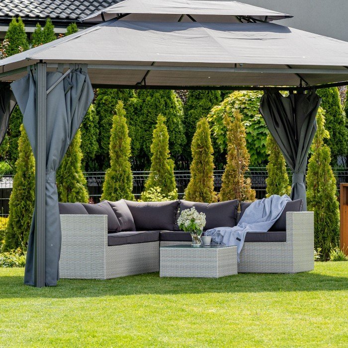 Das Möbelset ist so gestaltet, dass es höchsten Sitzkomfort bietet. Die großzügige Eckfläche lädt zum Entspannen in jeder Position ein. Sitz- und Rückenkissen erhöhen den Komfort zusätzlich. Sie bestehen aus Polyester und sind ideal für den Einsatz im Freien. In Kombination mit einer passenden Überdachung, etwa einer Pergola, bleibt Ihr Lieblingsplatz im Garten bei jedem Wetter nutzbar.