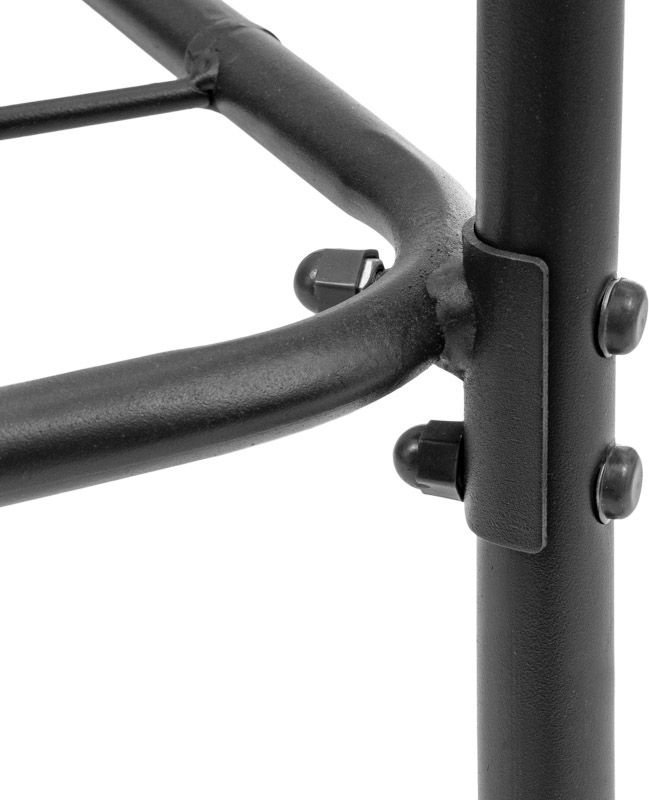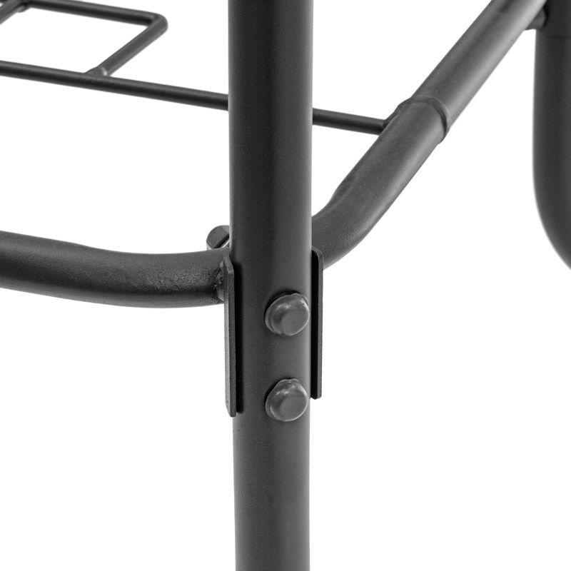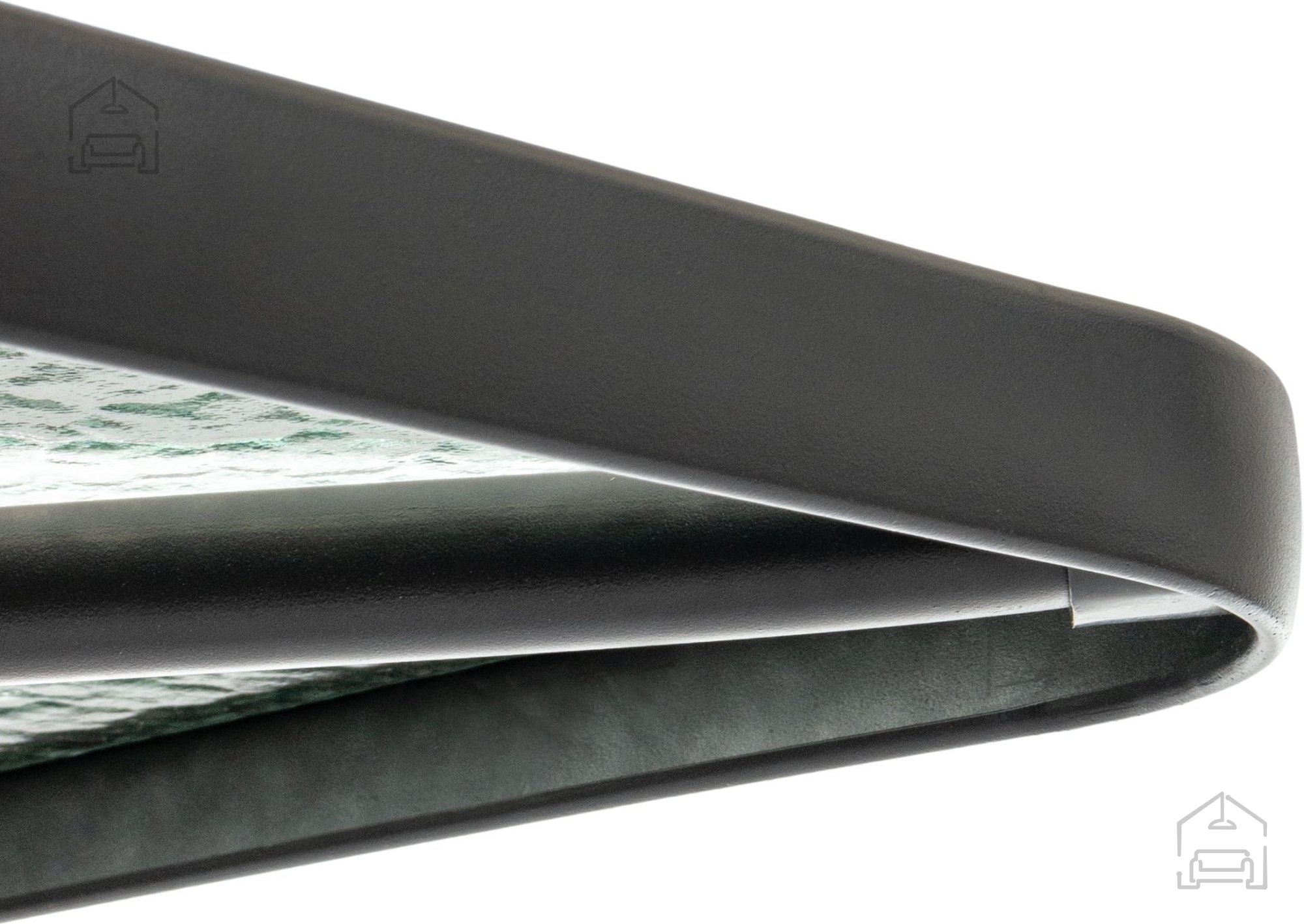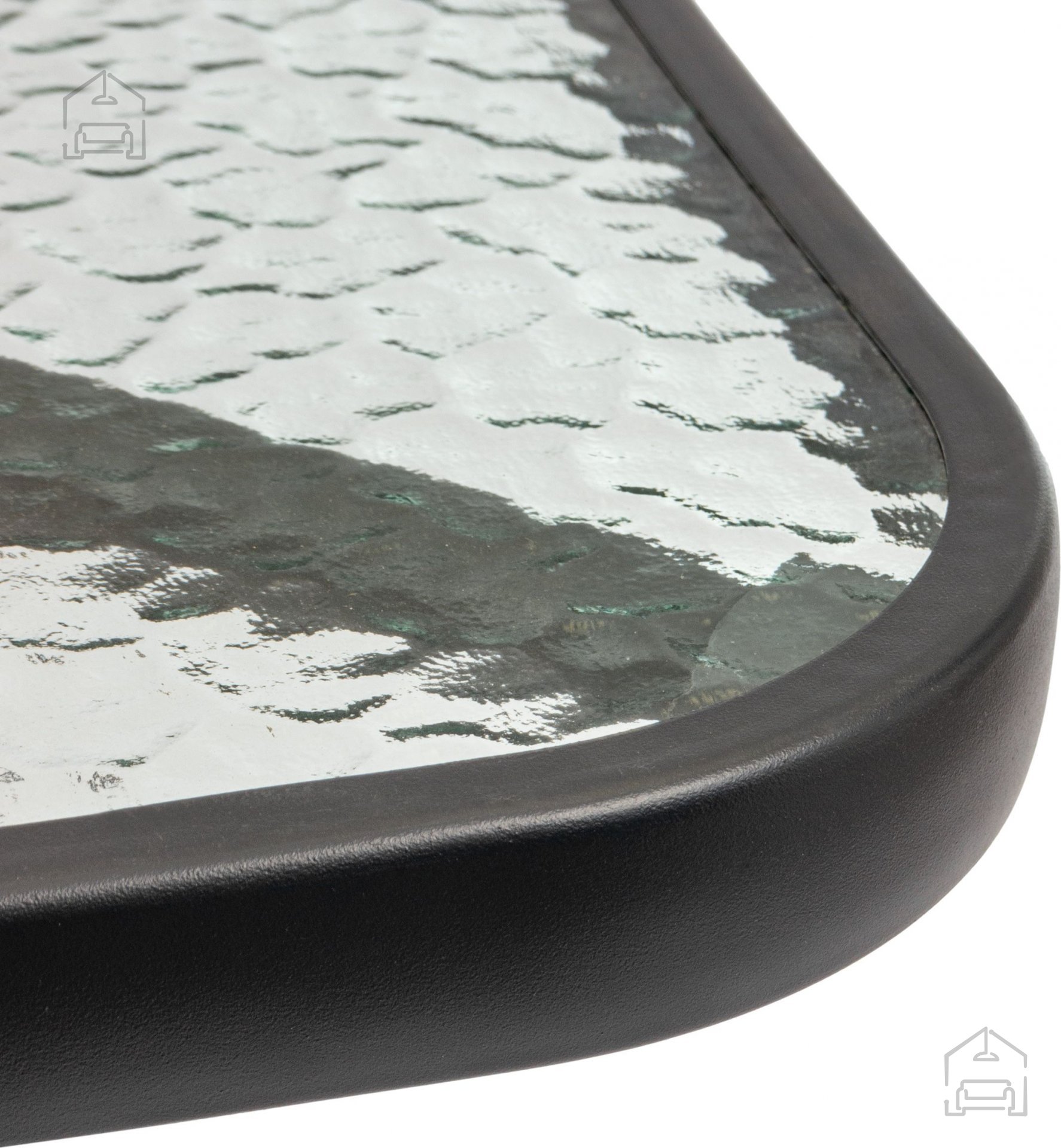 Die Tischplatte aus gehärtetem Glas mit einer Stärke von 5 mm ist besonders widerstandsfähig gegen Kratzer und Witterungseinflüsse. Das Glas lässt sich leicht reinigen, sodass der Tisch das ganze Jahr über gepflegt und glänzend bleibt. Das Gestell aus Stahl sorgt für Stabilität und Langlebigkeit, während die schwarze Farbe einen Hauch moderner Eleganz verleiht, der sich wunderbar mit unterschiedlichen Stühlen und Accessoires kombinieren lässt.