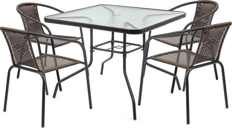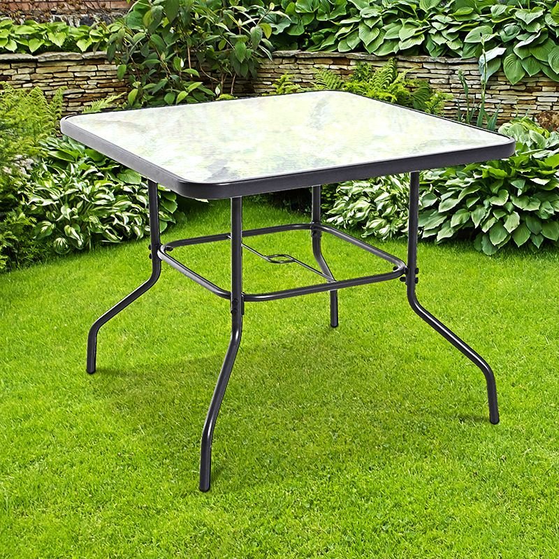 Das Stahlgestell ist pulverbeschichtet und dadurch zusätzlich vor Korrosion geschützt. So behält der Tisch auch nach mehreren Saisonen im Freien sein gepflegtes Aussehen. Das gehärtete Glas ist zudem sicherer als herkömmliches Glas, da es im Bruchfall in kleine, weniger scharfe Stücke zerfällt und so das Verletzungsrisiko reduziert.