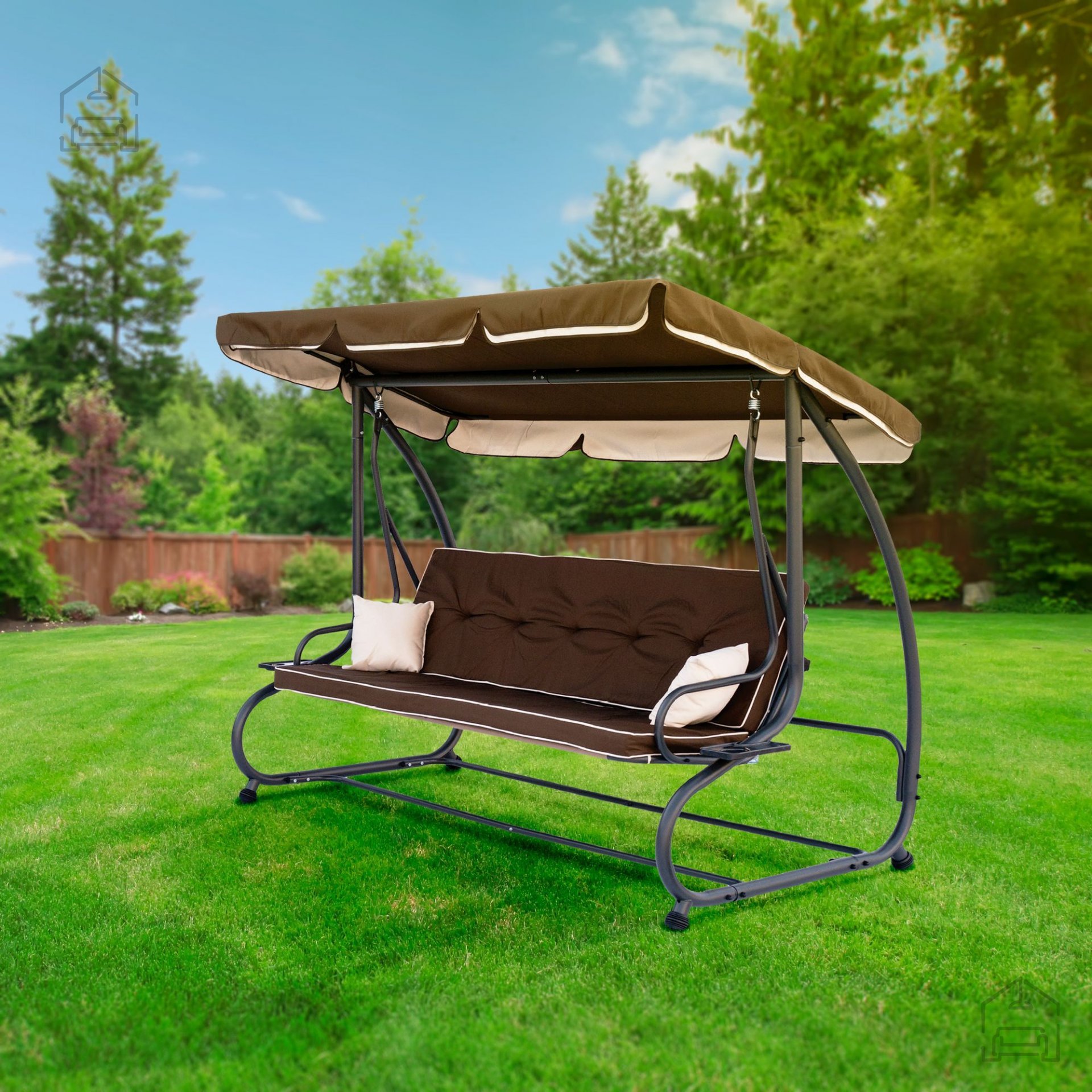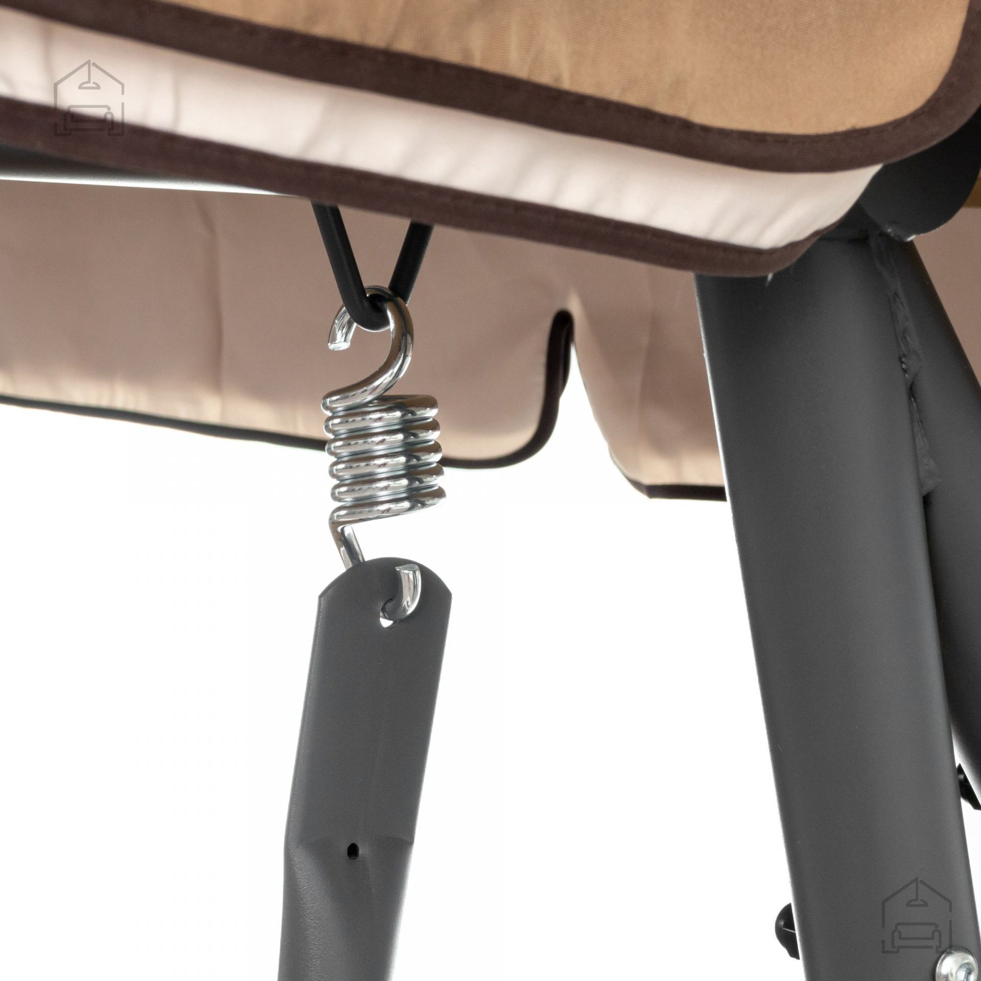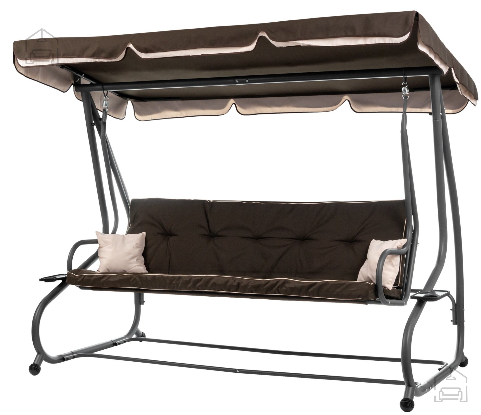 Die Gartenschaukel Megi in elegantem Schokoladenbraun ist die perfekte Wahl für alle, die ihren Außenbereich stilvoll und funktional gestalten möchten. Diese Schaukel ist nicht nur ein Möbelstück, sondern ein echter Ort der Entspannung und des Genusses auf Ihrer Terrasse oder im Garten. Mit den Maßen 220 x 130 x 170 cm bietet sie ausreichend Platz, um mehreren Personen gleichzeitig bequem Platz zu bieten.