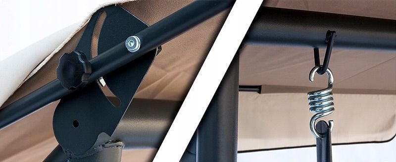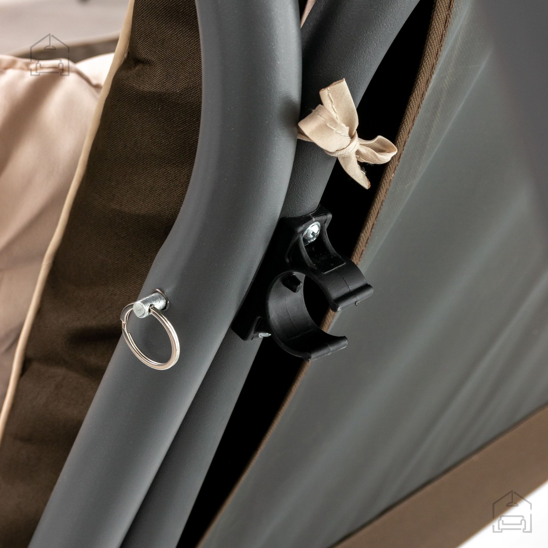 Material des Dachs: Gefertigt aus hochwertigem Polyester, das für seine Witterungsbeständigkeit bekannt ist. Das Dach verfügt über einen verstellbaren Neigungswinkel – ideal als Schutz vor Sonne oder leichtem Regen.