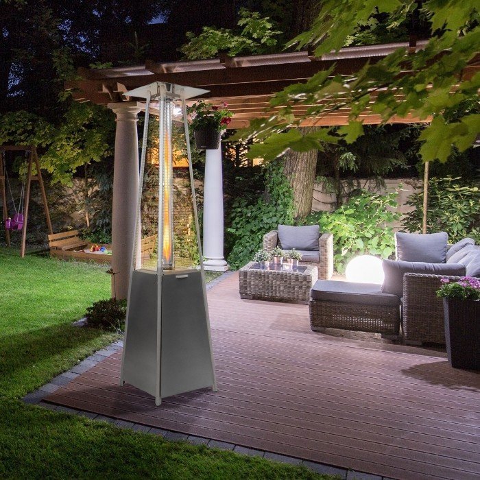 Der Heizstrahler Mir-H71SS spendet nicht nur Wärme, sondern setzt auch optische Akzente. Seine konische Silhouette mit quadratischer Basis wirkt modern und ausgewogen und harmoniert hervorragend mit Gartenmöbeln, Loungegarnituren oder Outdoor-Essgruppen. Das Flammenspiel im Quarzglasrohr erzeugt ein warmes, stimmungsvolles Licht – perfekt für entspannte Abende, gesellige Runden oder romantische Dinner im Freien. Mit seiner Höhe von 224 cm und den kompakten Grundmaßen von 49,5 × 49,5 cm benötigt er wenig Platz und verteilt die Wärme gleichmäßig in alle Richtungen.