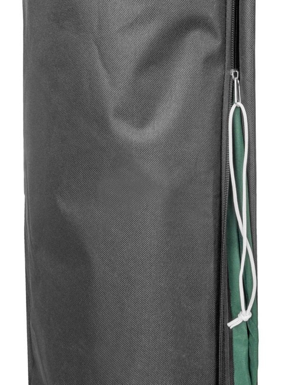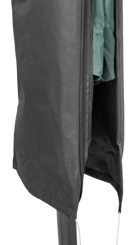 Die Hülle ist für Modelle der Serien Czapla und Kazuar M vorgesehen, passt dank ihrer universellen Maße und elastischen Elemente aber auch auf viele ähnliche Schirme. Mit einer Länge von 200 cm und einer Breite zwischen 37 und 47 cm deckt sie die meisten gängigen Sonnenschirme mit Mittelstange ab. Ein integrierter Reißverschluss sorgt für schnelles und unkompliziertes Schließen, während die Kordel am unteren Ende die Hülle auch bei stärkerem Wind sicher fixiert. Ein beiliegender Glasfaserstab erleichtert das Überziehen – so können Sie die Hülle bequem über den Schirm ziehen, ohne eine Leiter zu benötigen oder sich tief bücken zu müssen.