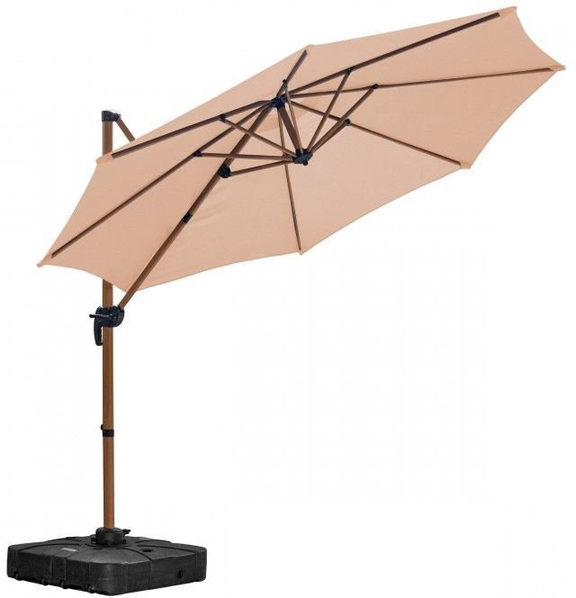 Der Gartenschirm mit einem Durchmesser von 3 Metern ist eine praktische Lösung, um Ihren Sitzbereich im Freien angenehm zu beschatten. Arm und Mast bestehen aus Aluminium, das besonders widerstandsfähig gegen Korrosion und Witterungseinflüsse ist. Das Schirmdach aus 180 g Polyester eignet sich ideal für den Außenbereich. Acht Verstärkungsstreben sorgen für zusätzliche Stabilität. Dank des verstellbaren Neigungswinkels können Sie den Schirm ganz einfach an Ihre Bedürfnisse anpassen. Der Fuß verfügt über einen 360‑Grad‑Drehmechanismus, der die Handhabung im Alltag besonders komfortabel macht. Das Öffnen und Schließen funktioniert mühelos über eine praktische Kurbel. Der Kreuzfuß sorgt für stabilen Halt – für den sicheren Stand werden Gewichte benötigt (nicht im Lieferumfang enthalten).