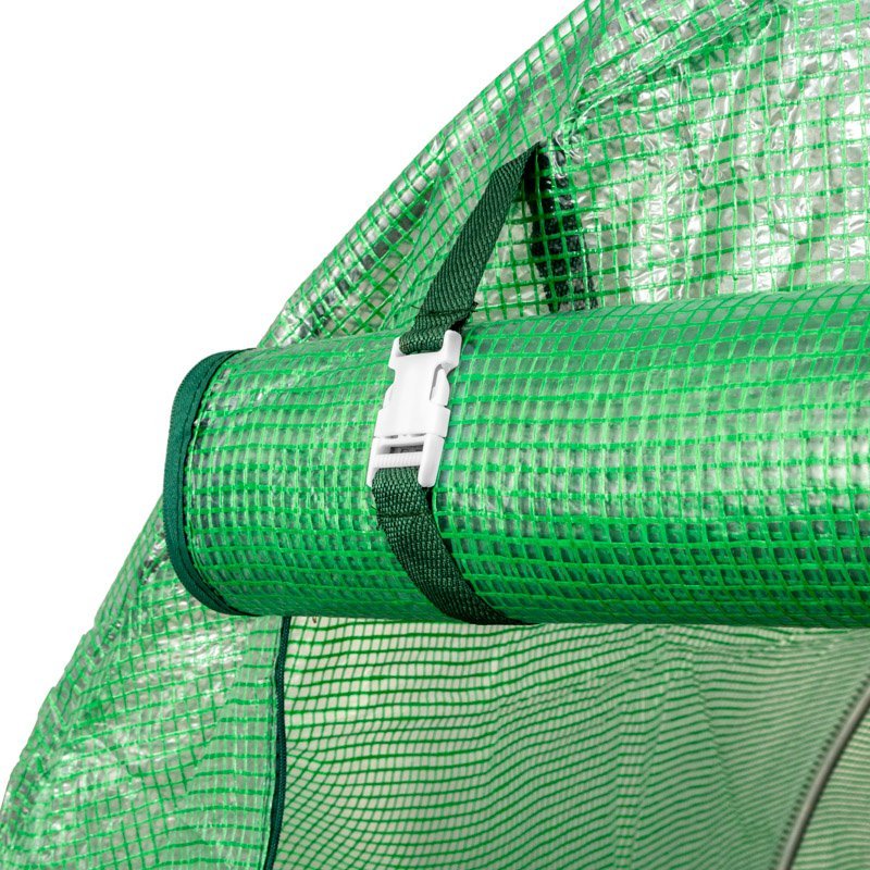Unser Gewächshaus ist aus verzinktem Qualitätsstahl gefertigt, der zusätzlichen Schutz vor Rost bietet. Die grüne PVC-Folie sorgt für optimalen Witterungsschutz und fügt sich zugleich harmonisch in das Gesamtbild Ihres Gartens ein.