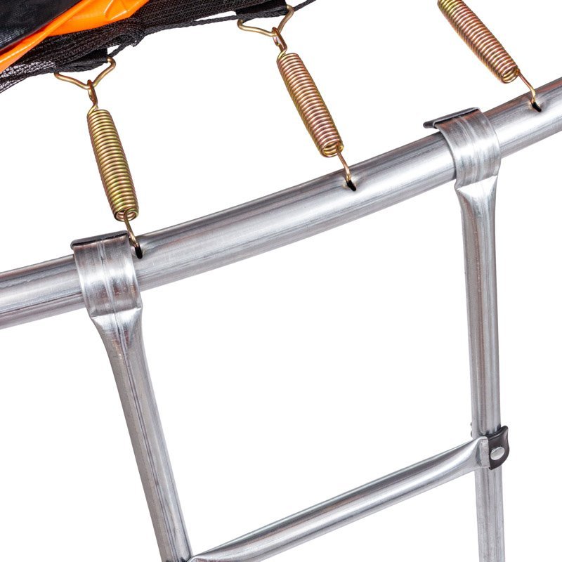 Der Gartentrampolin in Profi-Ausführung ist eine großartige Möglichkeit, den Freizeitbereich für Kinder einzurichten. Er sorgt stundenlang für jede Menge Spaß. Die verstärkten Rohrdurchmesser gewährleisten eine gute Federung der Bewegungen. Die Sprungmatte ist mit 54 Federn ausgestattet, was für optimale Spannung sorgt und den Springspaß erhöht. Drei U-förmige Standbeine geben dem gesamten Gestell Stabilität. Der Trampolin ist mit einem hohen Sicherheitsnetz und einer Federabdeckung versehen, die für die nötige Sicherheit beim Springen sorgen. Die Leiter erleichtert das Ein- und Aussteigen. Durch die verwendeten Materialien ist das Produkt besonders langlebig. Ein Gartentrampolin mit Netz ist eine ideale Möglichkeit, sich im Freien aktiv zu erholen.