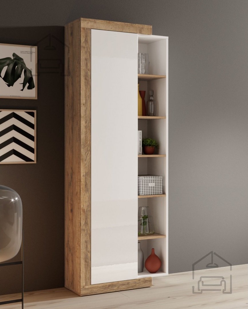 Die Vitrine Sintra ist weit mehr als nur ein Möbelstück – sie spiegelt Ihren Stil und Ihr Gespür für Ästhetik wider. Die Kombination aus Eiche und Hochglanz-Weiß bringt moderne Eleganz in jedes Zimmer. Dank ihrer Geräumigkeit ist sie ideal für alle, die zusätzlichen Stauraum wünschen, ohne auf ein ansprechendes Design zu verzichten.