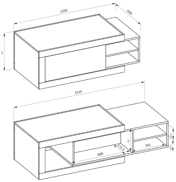 Ob Sie Platz für Zeitschriften, Bücher oder zusätzlichen Raum für Gäste benötigen – der Couchtisch Sintra deckt all diese Bedürfnisse ab. Dank seiner Ausziehfunktion und modernen Formensprache passt er sich Ihrem Lebensstil an, ohne dabei auf Eleganz zu verzichten.