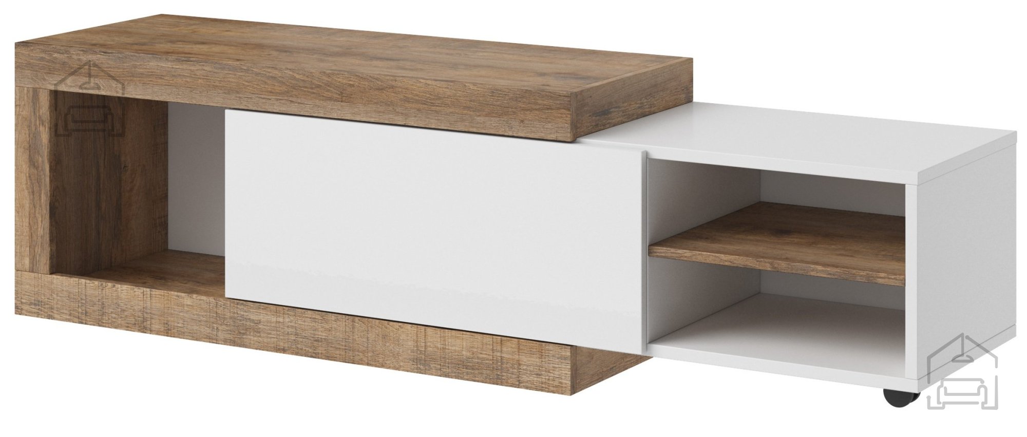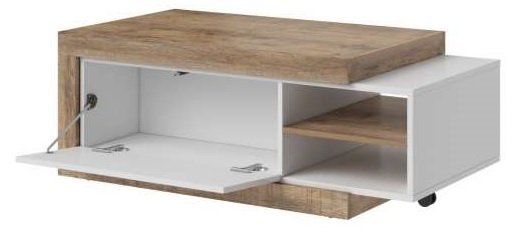Der Couchtisch Sintra ist Teil einer umfangreichen Wohnzimmerkollektion, zu der auch eine ausziehbare TV-Kommode und weitere Möbelstücke gehören – so können Sie ein harmonisches Gesamtbild in Ihrem Zuhause schaffen. Neben seiner ansprechenden Optik überzeugt der Tisch auch durch seine praktische Handhabung, die sich flexibel an Ihre Bedürfnisse und Ihren Alltag anpasst.