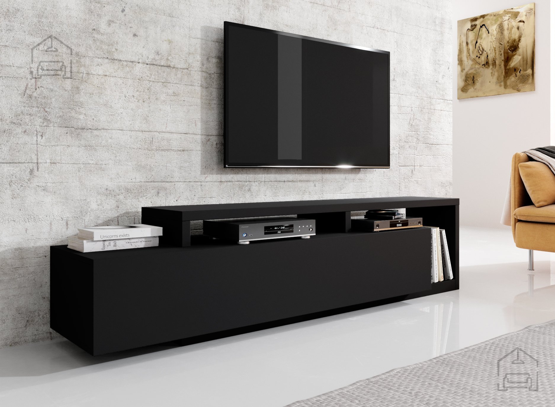 Die TV-Kommode Bota ist eine beeindruckende Kombination aus modernem Design und Funktionalität, die jedem Wohnzimmer einen Hauch von Eleganz verleiht. Mit ihren Maßen von 218,8 x 44,8 x 52,4 cm bietet sie ausreichend Platz für all Ihre Multimedia-Geräte, während die schwarze Supermatt-Oberfläche für einen edlen und zeitgemäßen Look sorgt.