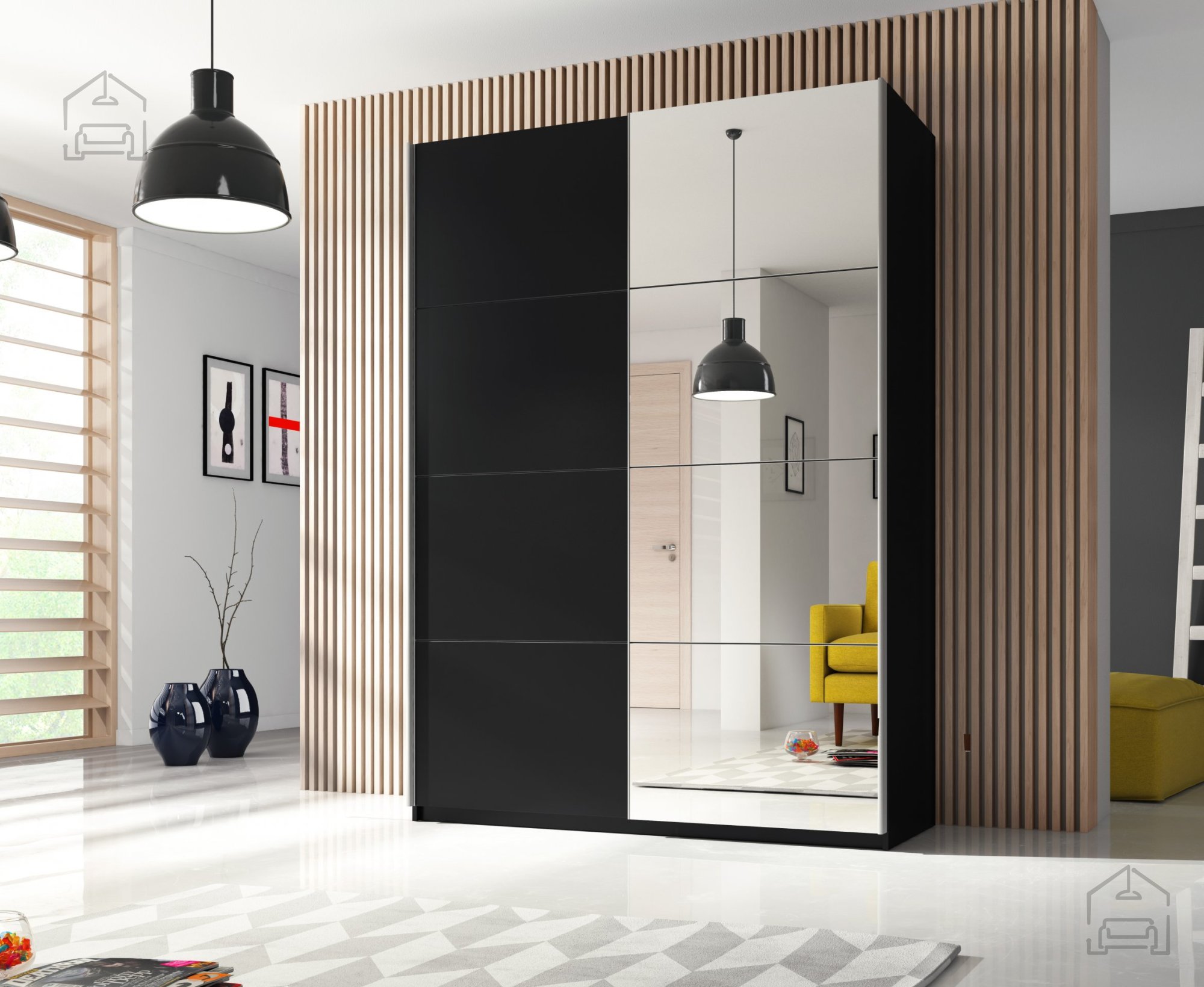 Entdecken Sie die gelungene Kombination aus Eleganz und Funktionalität mit dem Kleiderschrank Beta. Dieses Modell ist die ideale Lösung für alle, die Stauraum suchen, der sich harmonisch in ein modernes Wohnambiente einfügt. Mit seinen edlen schwarzen Farbtönen und der eleganten Spiegelfront bringt der Schrank Beta einen Hauch von zeitgemäßem Luxus in Ihr Schlafzimmer.