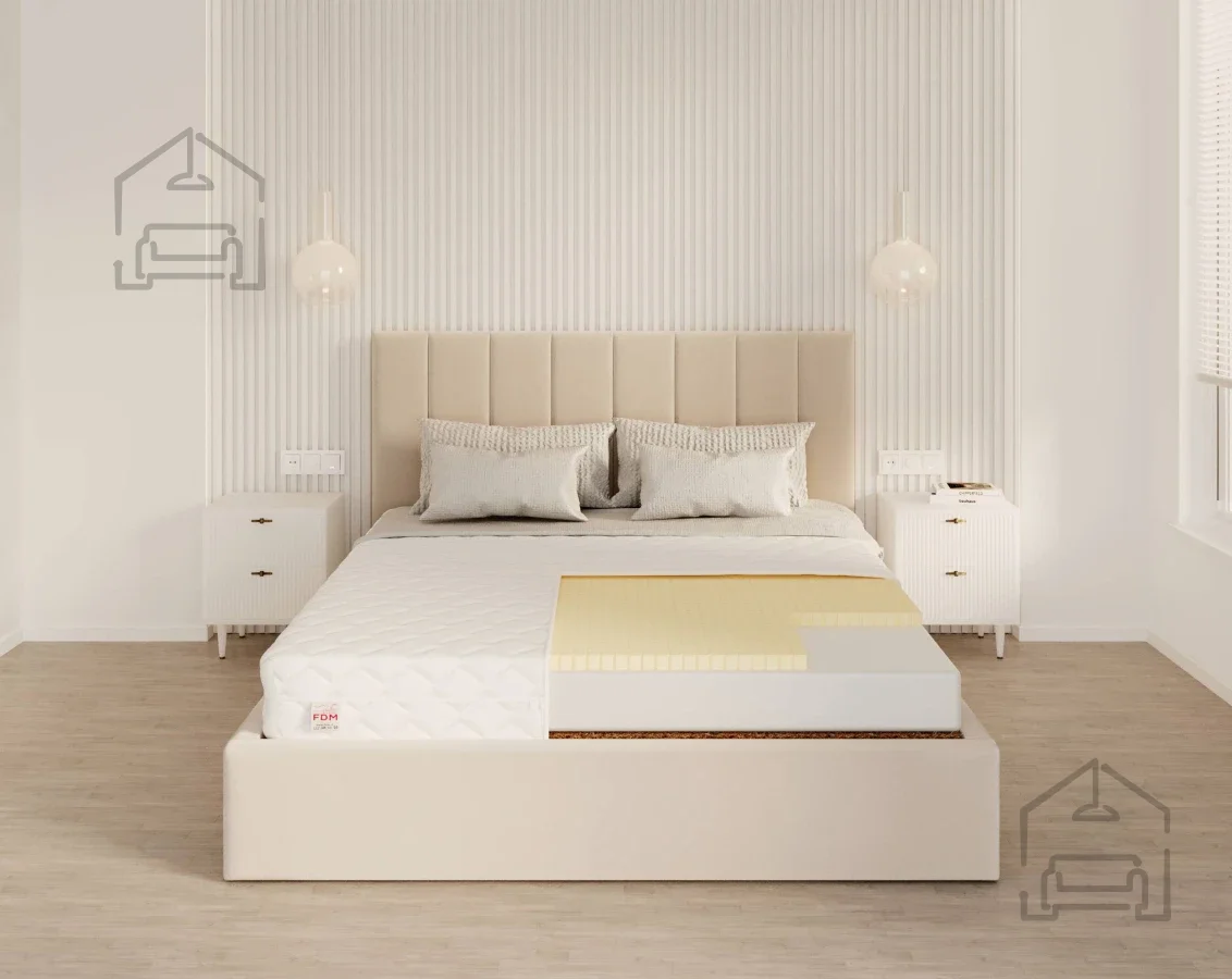 - Zusammensetzung: Kokosfasern, perforierter Latex, Klimafasern, Polyurethanschaum T25