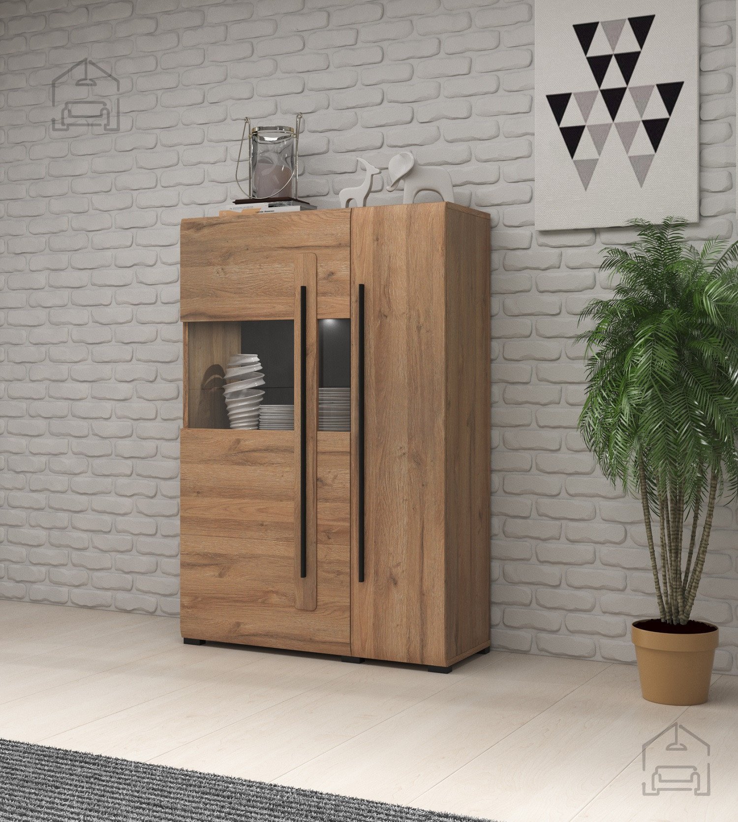 Der Schrank Tulsa 3 ist so konzipiert, dass er den vorhandenen Platz optimal ausnutzt. Dank der durchdachten Innenaufteilung bietet er reichlich Stauraum für Dokumente, Bücher oder Dekorationsobjekte. Optional ist gegen Aufpreis auch eine LED-Beleuchtung erhältlich, mit der sich bestimmte Bereiche hervorheben oder eine angenehme Lichtstimmung im Raum schaffen lassen. Diese Zusatzfunktion ist besonders beliebt in modernen Wohnzimmern, in denen Licht eine wichtige Rolle für das Ambiente spielt.