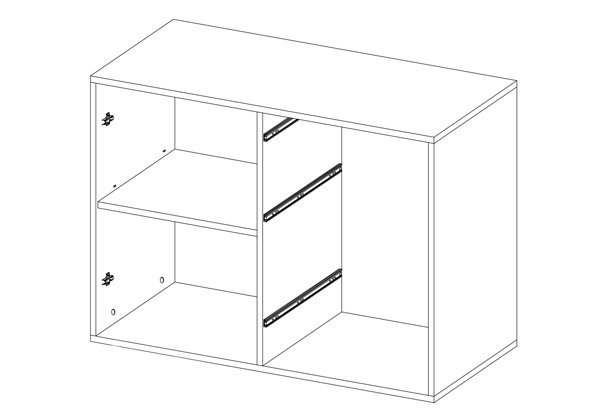 Die Kommode Tulsa 4 ist auf höchste Funktionalität ausgelegt. Auf der rechten Seite befinden sich drei großzügige Schubladen, ideal zum Verstauen von Kleidung, Dokumenten oder anderen Gegenständen. Links bietet ein Schrankfach zusätzlichen Platz für höhere Objekte oder zur besseren Organisation. Diese durchdachte Aufteilung sorgt dafür, dass Ihr Zuhause stets ordentlich und gut strukturiert bleibt.