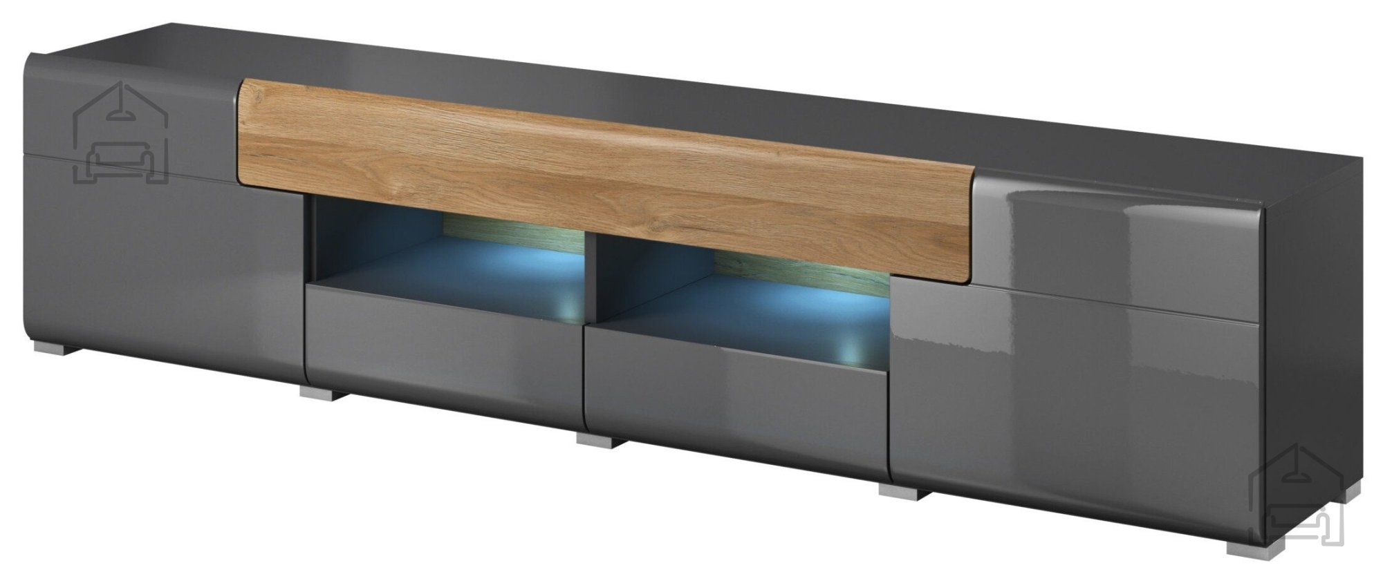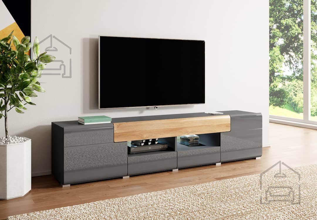 Auch die Möglichkeit, das Board mit LED-Beleuchtung zu erweitern, werden Sie zu schätzen wissen – sie verleiht dem Möbelstück eine moderne und elegante Note. Dank der großzügigen Gestaltung finden all Ihre Geräte bequem Platz, ohne Kompromisse bei Stil oder Komfort.