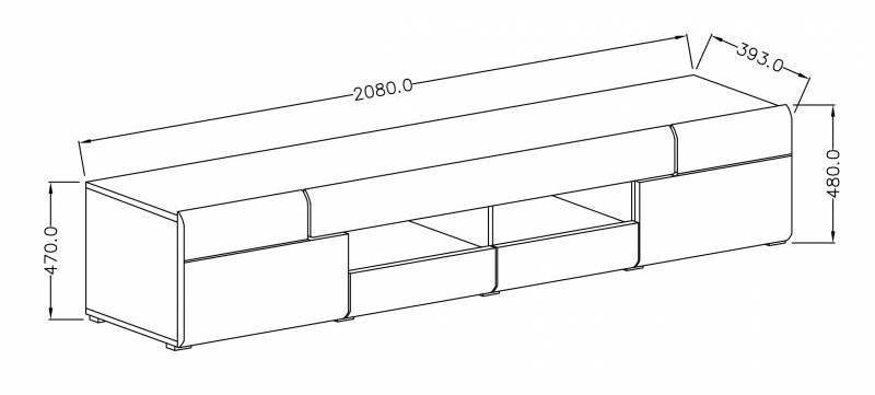 Entdecken Sie die perfekte Verbindung aus Eleganz und Funktionalität mit unserem TV-Board Toledo in den Maßen 208x39x47 cm – modernes Design trifft auf praktische Alltagstauglichkeit und bringt frischen Stil in Ihr Wohnzimmer. Dieses hochwertige Möbelstück aus robustem MDF überzeugt durch seine ansprechende Optik und lange Haltbarkeit – eine ausgezeichnete Wahl für jedes Zuhause.