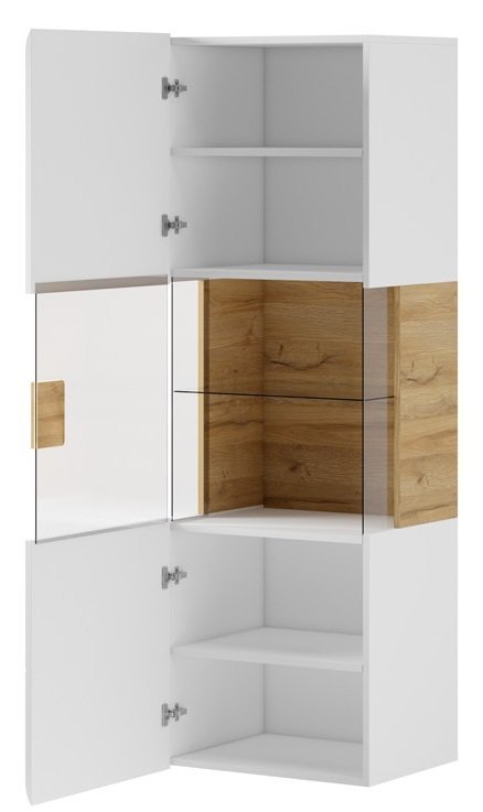 Die Vitrine Toledo 2 ist ein echtes Highlight des zeitgemäßen Wohnstils. Sie vereint ansprechende Optik, Funktionalität und ein attraktives Preis-Leistungs-Verhältnis. Gefertigt aus hochwertigen MDF-Platten bietet diese Vitrine eine gelungene Kombination aus modernem Design und praktischer Alltagstauglichkeit – und verleiht Ihrem Wohnzimmer einen Hauch von Eleganz. Wenn Sie Ihrem Zuhause eine stilvolle Note geben möchten, ist die Toledo 2 die richtige Wahl.