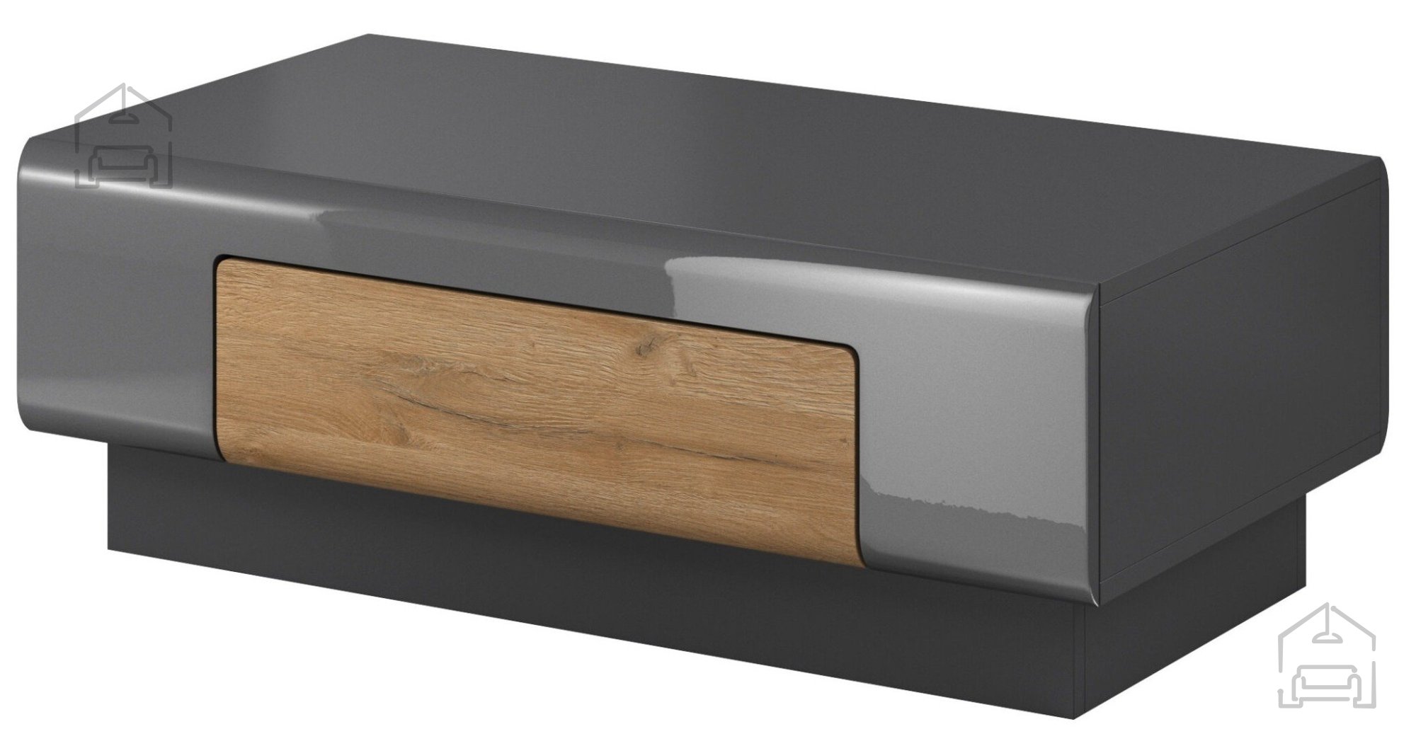 Der Couchtisch Toledo überzeugt durch eine geschmackvolle Farbgestaltung, die eine warme und einladende Atmosphäre schafft. Das anthrazitfarbene Korpus verleiht dem Tisch einen Hauch von Modernität und Raffinesse, während die Front in der Farbe Grandson-Eiche natürliche Wärme und Behaglichkeit ausstrahlt. Diese harmonische Kombination fügt sich mühelos in verschiedenste Einrichtungsstile ein – ob modern oder klassisch.