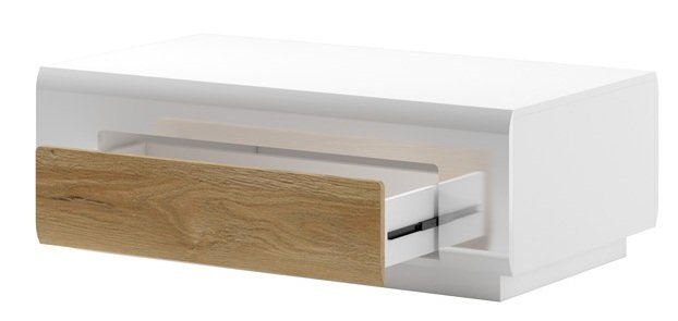 Die weiß glänzende Front verleiht Ihrem Raum Frische und Helligkeit. Dieser Tisch ist ideal für alle, die modernes Design und schlichte Eleganz schätzen. Durch seine minimalistische Form lässt er sich mühelos mit anderen Möbelstücken und Dekorationen kombinieren.
