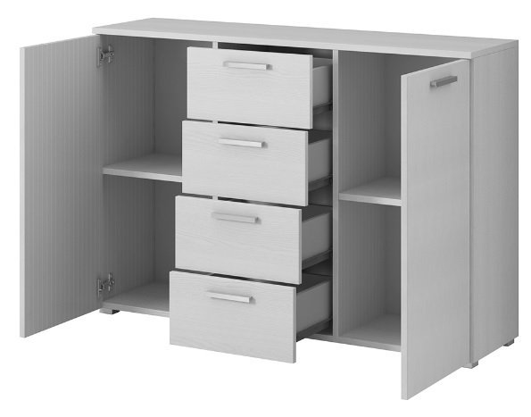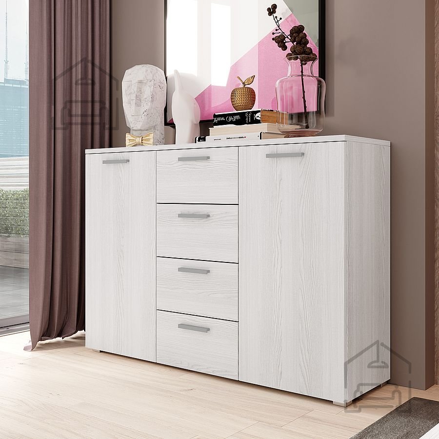 Ausgestattet mit vier großzügigen Laden bietet die Kommode Galaxy viel Platz für Kleidung, persönliche Dinge oder andere Utensilien. So bleibt Ihr Zuhause stets ordentlich und ansprechend. Die leichtgängigen Schubladen lassen sich einfach öffnen und schließen, was die Handhabung besonders komfortabel macht.