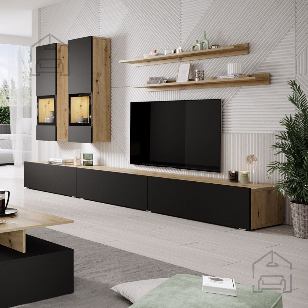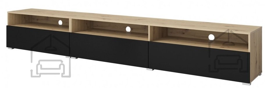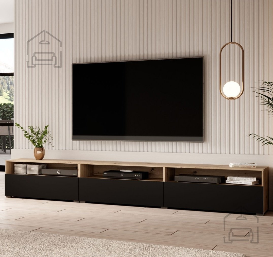 1. Geräumiges Design: Mit den Maßen 270x41x42 cm bietet es ausreichend Platz für Fernseher verschiedener Größen und weitere Geräte. 2. Hochwertige Materialien: Gefertigt aus robuster Spanplatte für eine lange Lebensdauer. 3. Elegante Farbkombination: Artisan/Schwarz Supermatt passt perfekt zu modernen wie auch klassischen Wohnstilen. 4. Praktische Aufteilung: Mehrere Laden und Fächer sorgen für Ordnung und Übersicht. 5. Zuverlässige Qualität: Produziert in der anerkannten Helvetia Meble Fabrik – für beste Verarbeitung und Langlebigkeit.