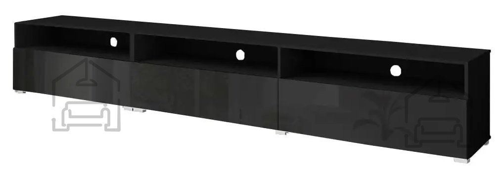 Wir präsentieren Ihnen die TV-Kommode Athens in zeitlosem Schwarz Supermatt – ein stilvolles Möbelstück, das perfekt in jedes moderne Zuhause passt. Mit ihren Maßen von 270x41x42 cm unterstreicht sie nicht nur die Eleganz Ihres Wohnzimmers, sondern bietet auch durchdachte Funktionalität, die all Ihre Ansprüche an Stauraum und Ordnung erfüllt.