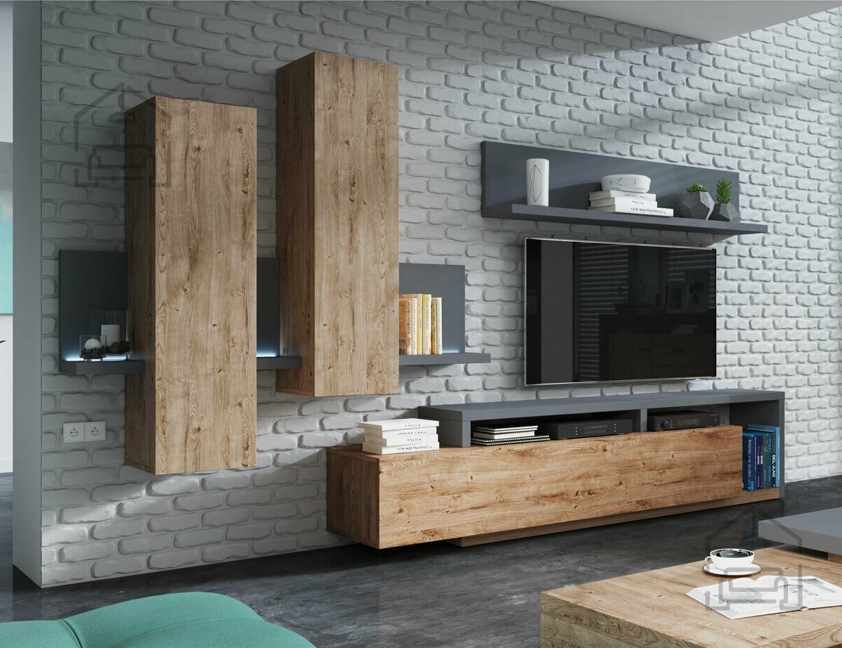 Entdecken Sie die perfekte Verbindung aus Eleganz und Funktionalität mit dem TV-Regal Bota in Anthrazit und Ribbec Eiche. Dieses stilvolle Möbelstück ist ideal für moderne Wohnräume, die Wert auf ein edles Erscheinungsbild und praktische Nutzung legen. Dank des durchdachten Designs und der hochwertigen Materialien wird der TV-Regal Bota rasch zum Mittelpunkt Ihres Wohnzimmers.