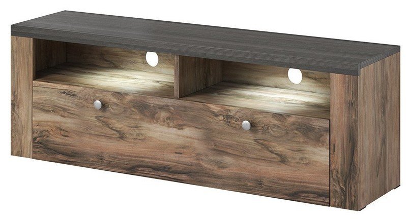 Wir präsentieren Ihnen das außergewöhnliche TV-Board Larona, das Eleganz, Funktionalität und zeitloses Design vereint und Ihrem Zuhause eine edle Note verleiht. Dieses stilvolle Möbelstück wurde für moderne Wohnräume entworfen, in denen Ästhetik und praktische Nutzung perfekt harmonieren. Gefertigt in der renommierten Fabrik Helvetia Meble in Polen, überzeugt das TV-Board Larona mit europäischer Qualität und einem Design, das begeistert.