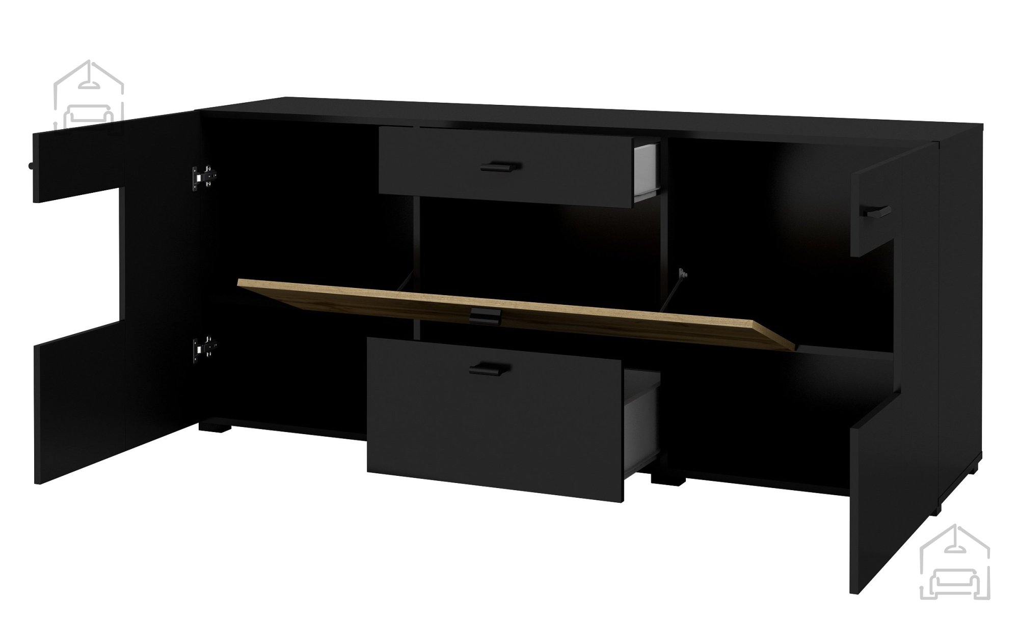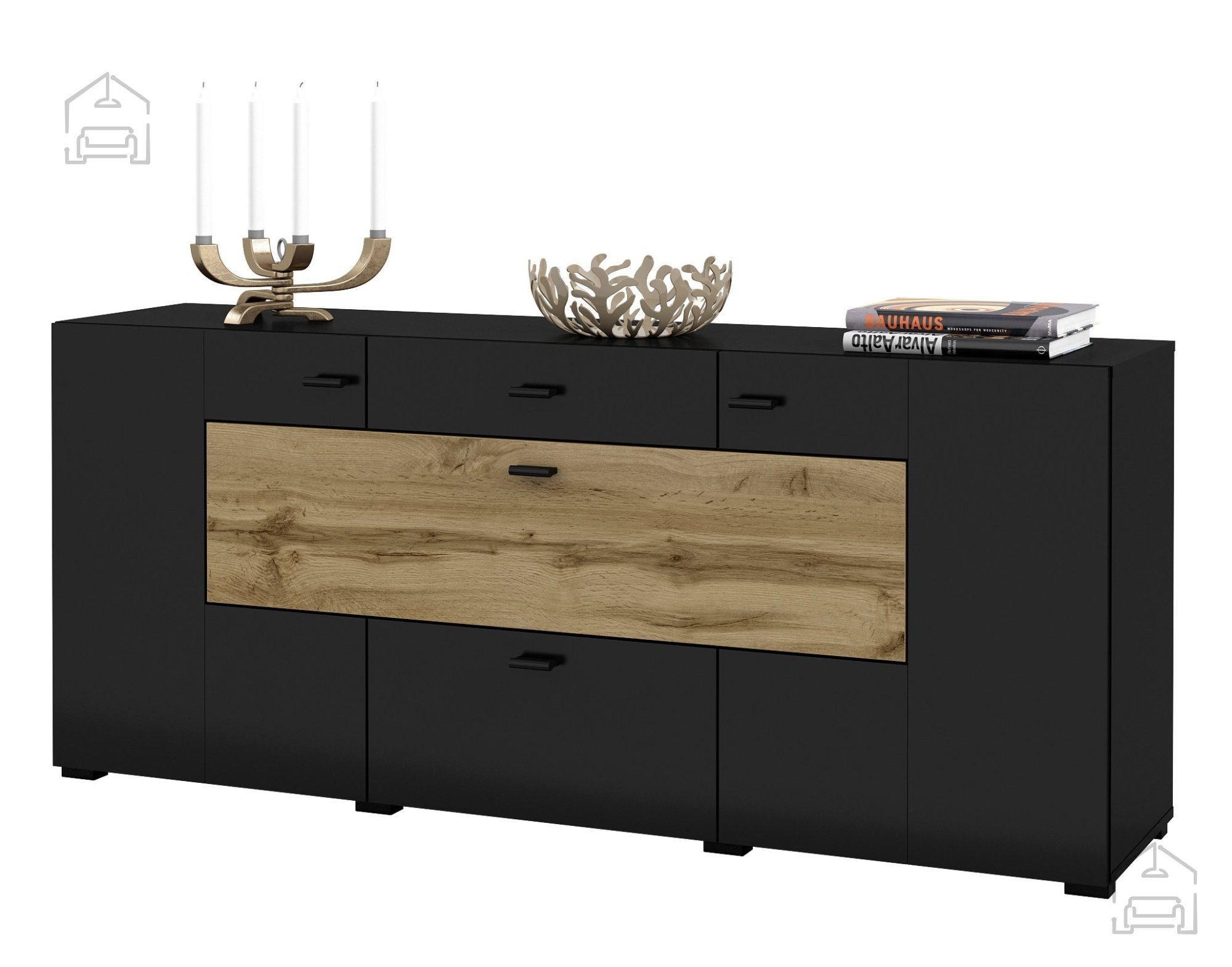Wenn Sie auf der Suche nach dem perfekten Möbelstück für Ihr Zuhause sind, wünschen Sie sich etwas, das nicht nur praktisch, sondern auch optisch ansprechend ist. Kommode Coby – Schwarz Onyx/Wotan Eiche aus der Wohnzimmerkollektion Coby ist genau die Wahl, die Ihrem Wohnraum eine Portion Eleganz und Modernität verleiht. Mit ihren Maßen von 165x39x71 cm passt sie ideal in unterschiedliche Raumkonzepte – ganz gleich, ob Sie eine große oder kleinere Wohnung haben.