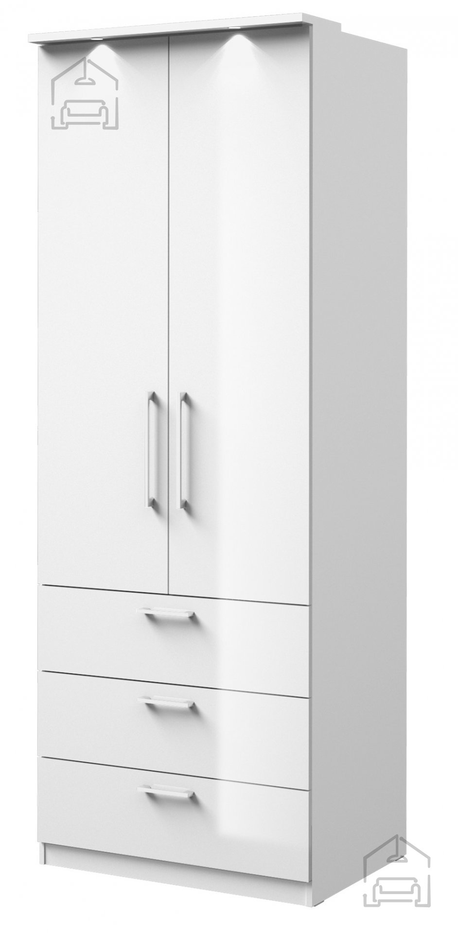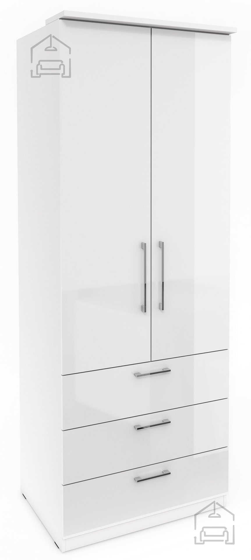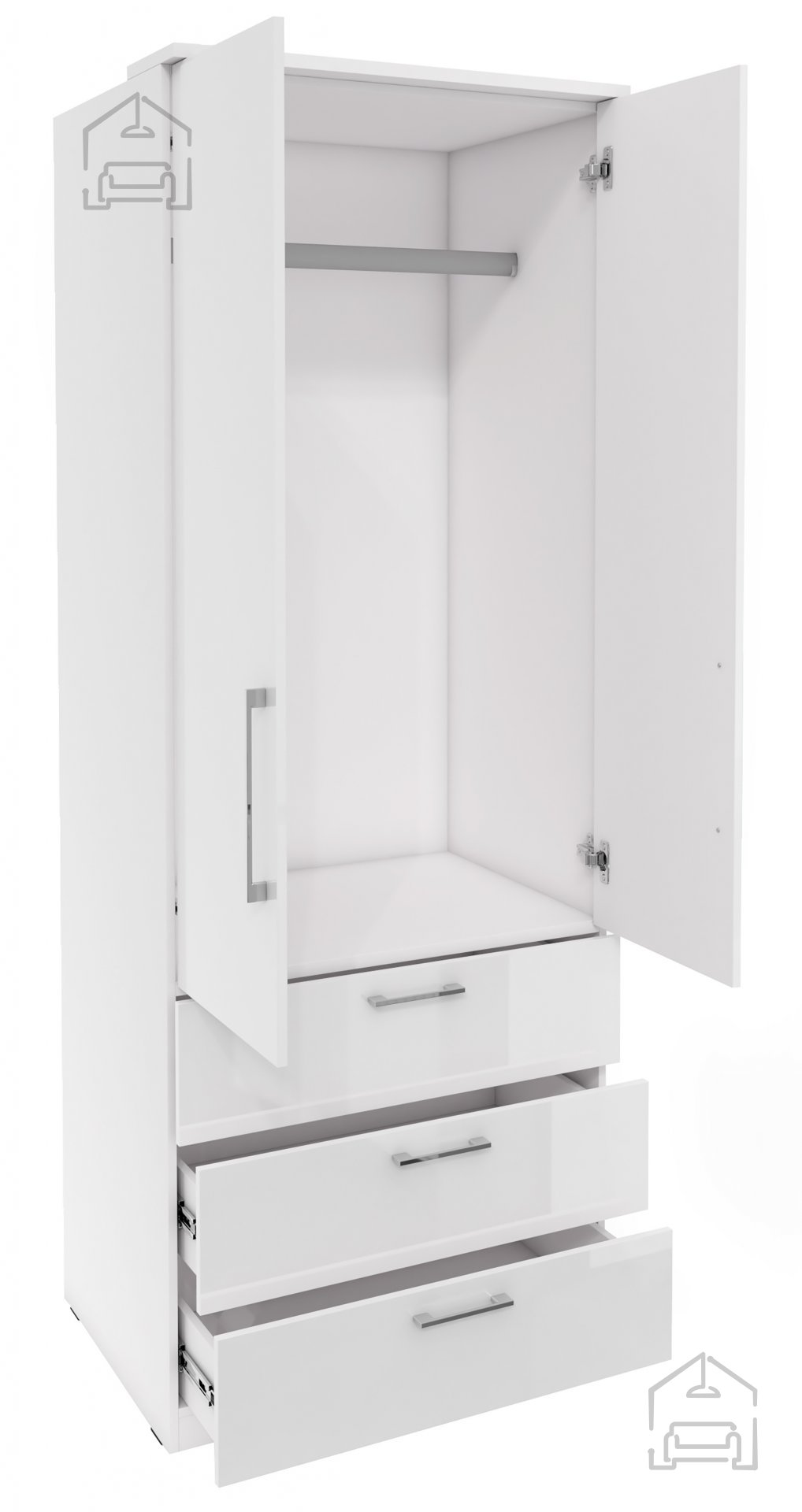 Der Kleiderschrank Optima klein besteht aus MDF, einem Material, das für seine Langlebigkeit und Widerstandsfähigkeit gegen Abnutzung bekannt ist. So behält der Schrank auch nach Jahren seinen eleganten Look. Die weiße Hochglanzoberfläche verleiht ihm eine edle Note und lässt sich mühelos mit verschiedensten Einrichtungsstilen kombinieren – von modern-minimalistisch bis klassisch.