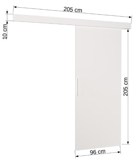 Die Tür besteht aus einer hochwertigen Spanplatte mit 16 mm Stärke, die Stabilität, Haltbarkeit und Langlebigkeit gewährleistet. Die glatte Oberfläche ist pflegeleicht und widerstandsfähig gegen den täglichen Gebrauch – so bleibt die Tür auch nach Jahren schön wie am ersten Tag. Ein robuster Aluminiumgriff mit 28 mm Durchmesser sorgt für angenehmen Halt und unterstreicht das moderne Design. Dank des Schiebesystems benötigt die Tür beim Öffnen keinen zusätzlichen Platz – ideal für kleinere Räume, Garçonnièren oder moderne Wohnungen mit offenem Grundriss.