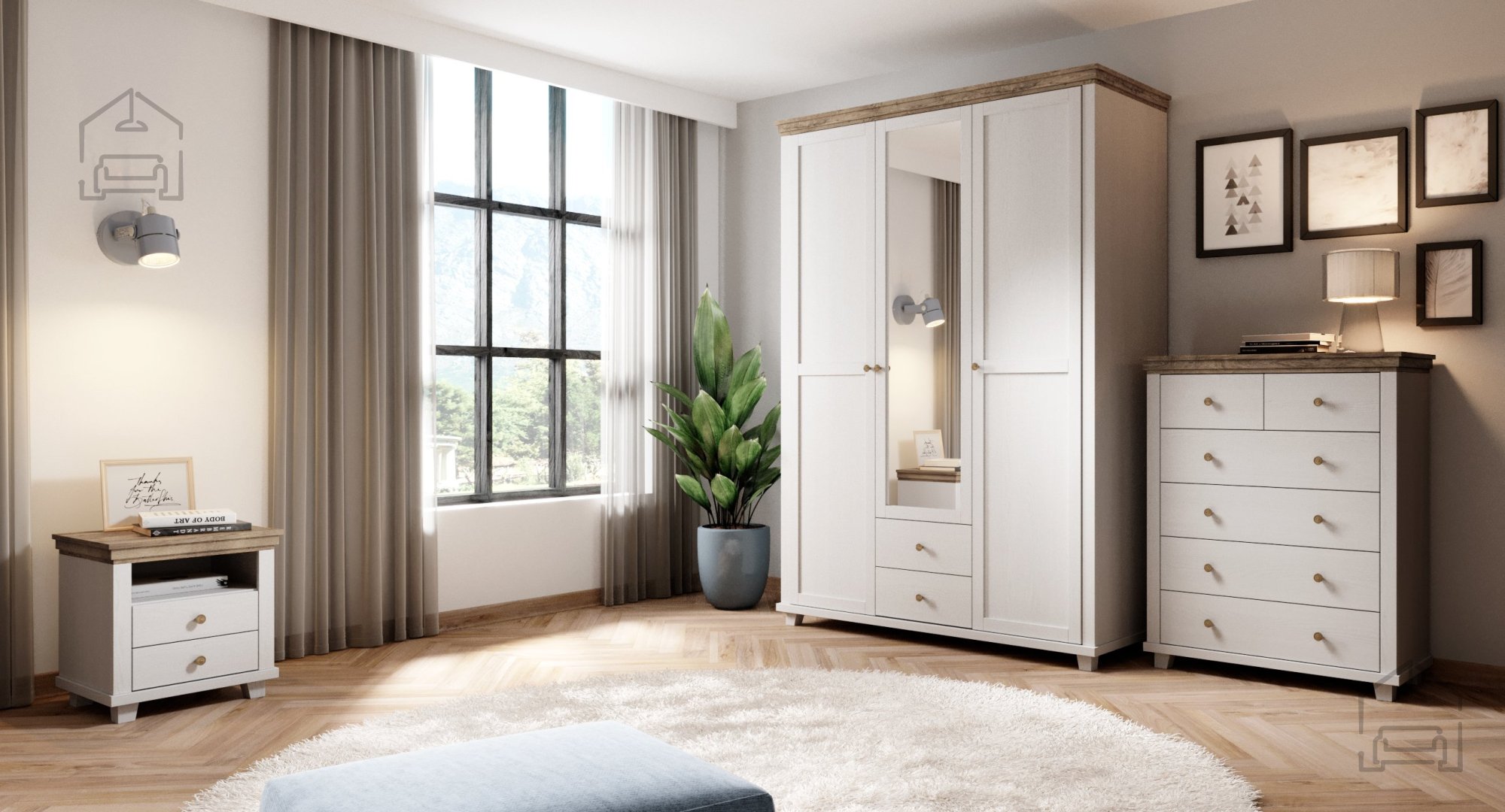 Wenn Sie Möbel suchen, die Ihrer Schlafzimmereinrichtung Eleganz und Zweckmäßigkeit verleihen, ist das Schlafzimmer Evora S – Weißes Esche/Eiche Lefkas genau das Richtige für Sie. Verpassen Sie nicht die Gelegenheit, Ihr Zuhause mit dieser besonderen Kollektion aufzuwerten, die auch für Ihr Wohnzimmer erhältlich ist. Richten Sie Ihr Zuhause mit der Evora-Serie ein und schaffen Sie Harmonie und Behaglichkeit in jedem Raum.