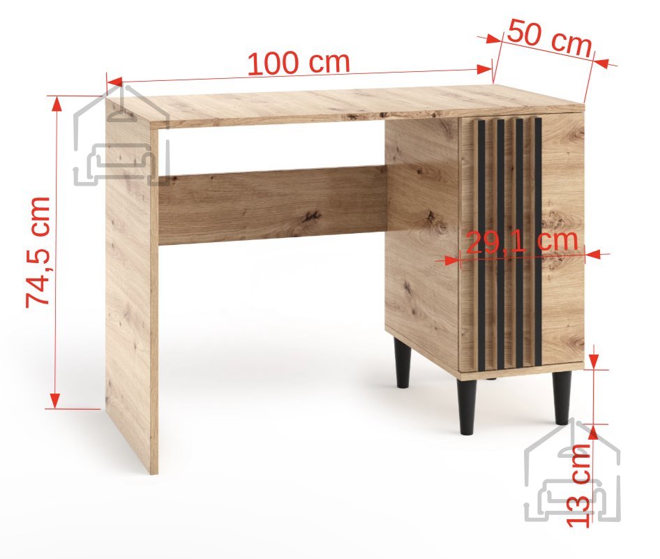 Die Maße von 100x50x54,5 cm bieten ein ideales Verhältnis zwischen Kompaktheit und Nutzfläche. Der Tisch passt perfekt in kleinere Wohnungen, Homeoffices oder Kinderzimmer, wo jeder Zentimeter zählt. Trotz seiner geringen Größe bietet er ausreichend Platz für Laptop, Unterlagen und alles, was Sie zum effizienten Arbeiten oder Lernen benötigen.