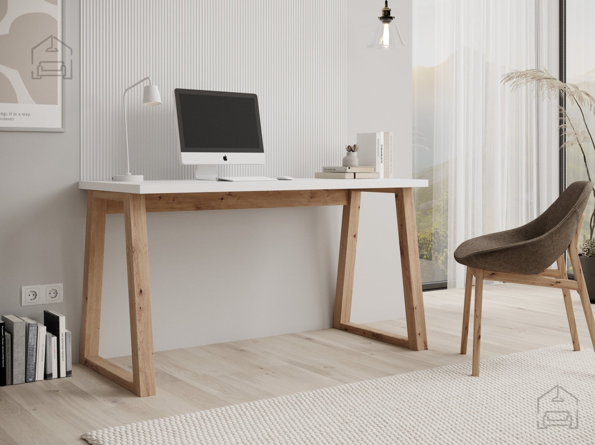 Der Schreibtisch in der Kombination Weiß/Artisan vereint modernes Design mit praktischer Funktionalität. Klare Linien, eine durchdachte Gestaltung und der warme Holzton schaffen eine angenehme Arbeitsatmosphäre, die Konzentration und Komfort fördert. Mit den Maßen 135x65x75,2 cm bietet der Tisch ausreichend Platz für Computer, Unterlagen und Zubehör, ohne dabei zu viel Raum einzunehmen – ideal für das Homeoffice, das Jugendzimmer oder das Büro.