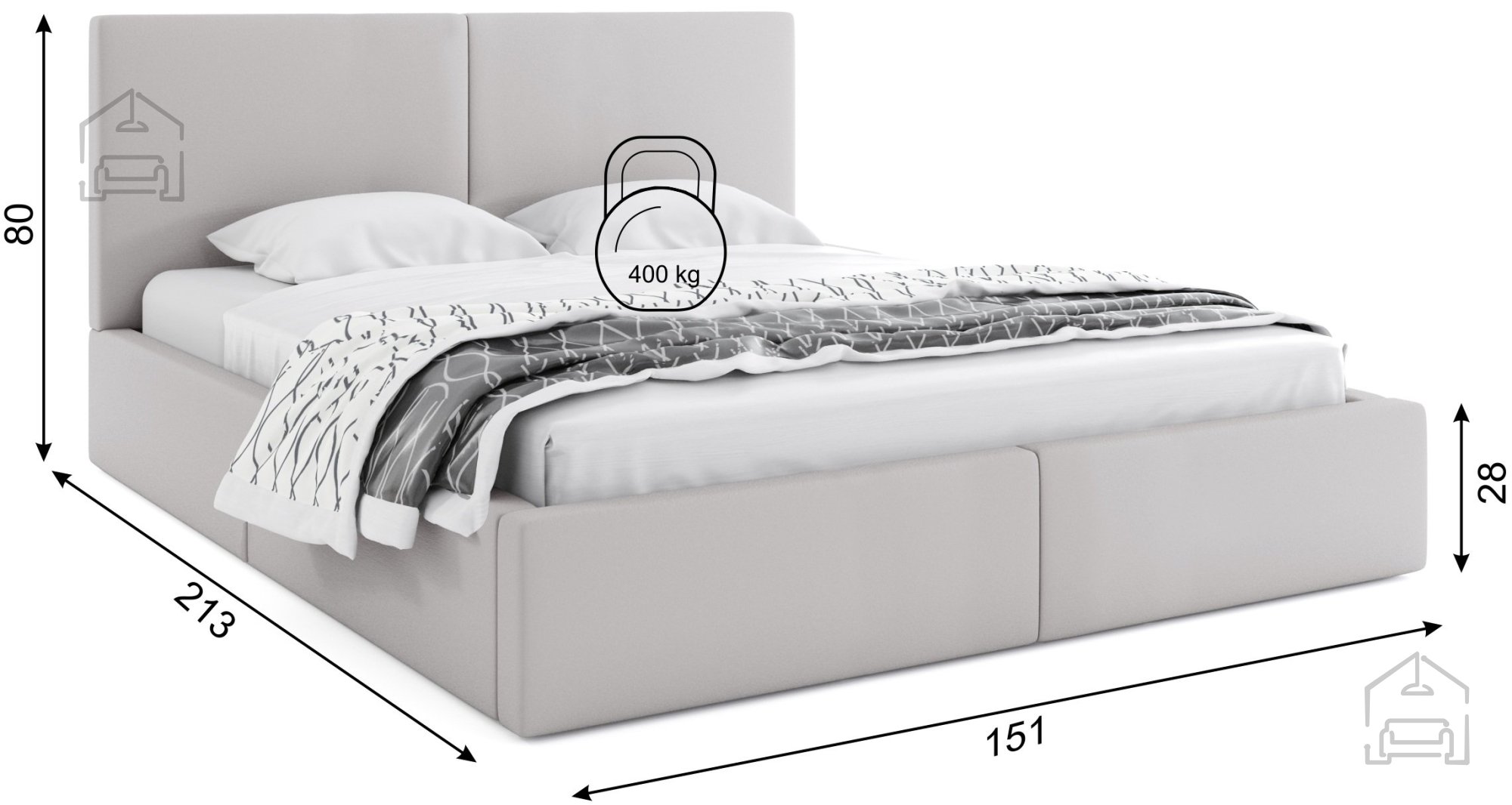 Die Konstruktion besteht aus hochwertiger Spanplatte, die Langlebigkeit und Stabilität garantiert. Der gepolsterte Rahmen, bezogen mit einem angenehm weichen Stoff, schafft ein Gefühl von Wärme und Behaglichkeit. Das Material ist resistent gegen Abnutzung und Fusselbildung, zudem leicht zu pflegen, sodass das Bett auch nach vielen Jahren seinen frischen Look behält. Der Stoff weist zudem eine begrenzte Flüssigkeitsaufnahme auf, wodurch Flecken nicht sofort eindringen und leichter zu reinigen sind.
