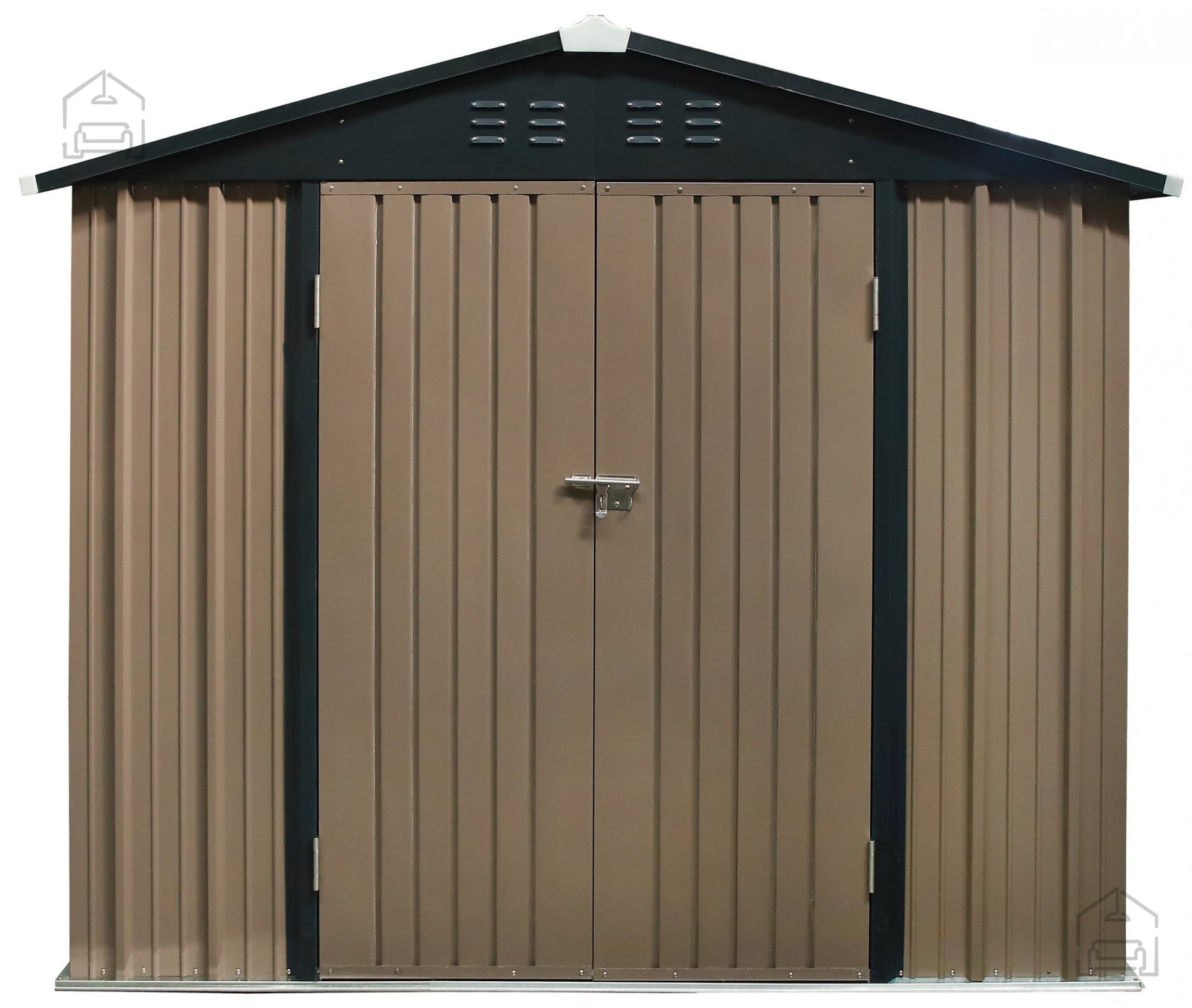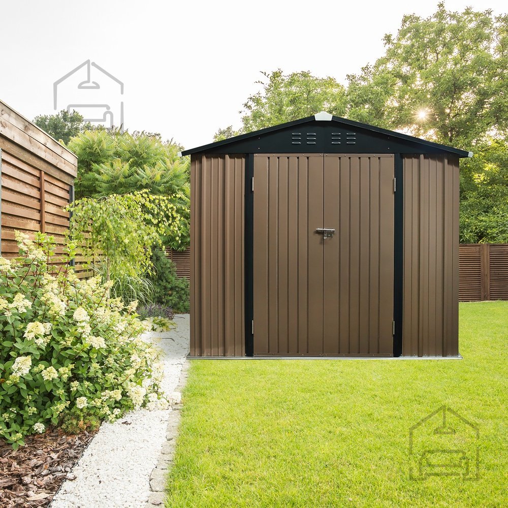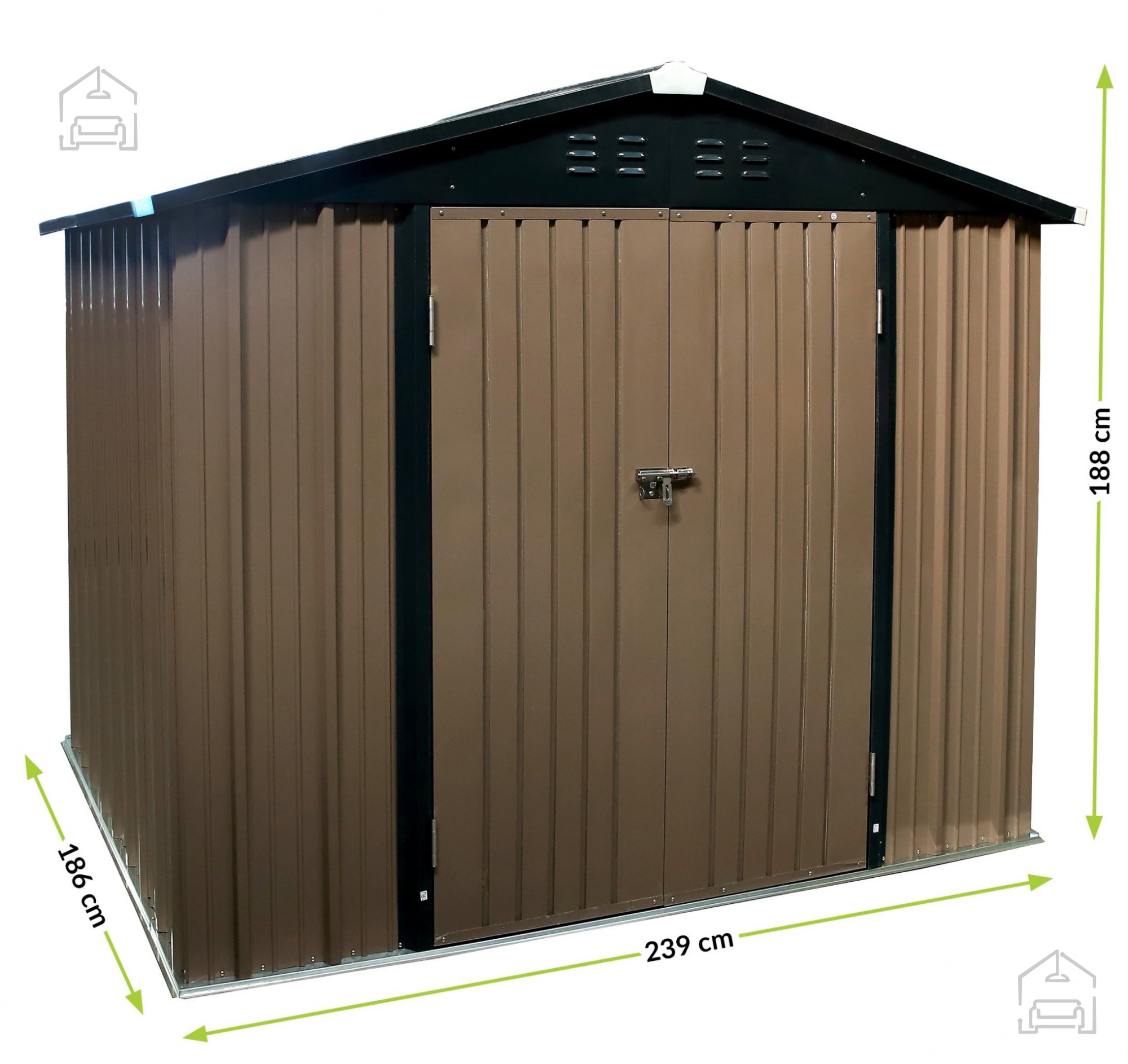 Das großzügige Gerätehaus ist eine praktische Lösung für Garten oder Grundstück, um alle wichtigen Werkzeuge und Utensilien ordentlich zu verstauen. Im Stauraum finden Gartengeräte, Fahrräder oder nach der Saison auch Gartenmöbel problemlos Platz. Die verzinkte Stahlkonstruktion ist besonders korrosionsbeständig, sodass das Häuschen lange hält, ohne dass Sie sich um Rost sorgen müssen. Zusätzlich schützt eine Folie auf den Wandflächen das Material. Da das Häuschen keinen festen Boden hat, lässt es sich flexibel auf nahezu jeder Fläche aufstellen. Durch die Lüftungsschlitze in der Mitte bleibt die Luftzirkulation stets optimal. Die verwendeten Materialien sorgen insgesamt für eine lange Lebensdauer.