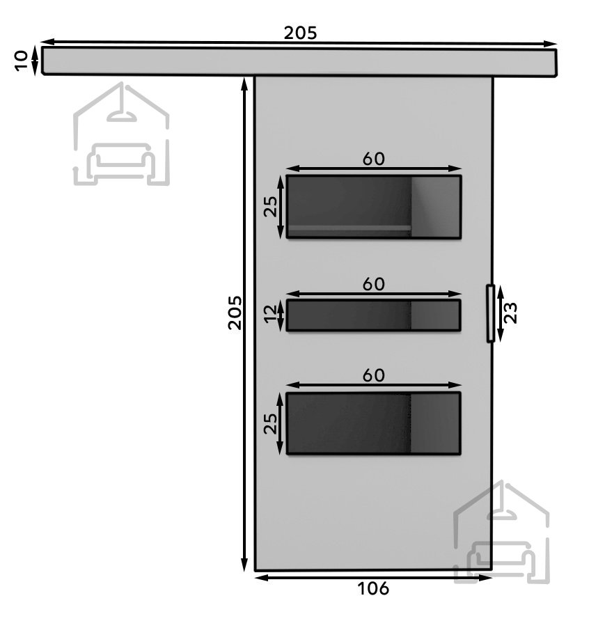 Mit den Maßen 106 × 205 cm bietet das Modell ein ausgewogenes Verhältnis zwischen Design und Funktion. Dank ihrer universellen Größe passt die Cento 106 ideal in die meisten Standardöffnungen und lässt sich flexibel in verschiedene Räume integrieren. Durch die kompakte Bauweise kann sie sowohl als Raumteiler als auch als stilvolles Designelement eingesetzt werden, das das Gesamtbild Ihrer Einrichtung abrundet.