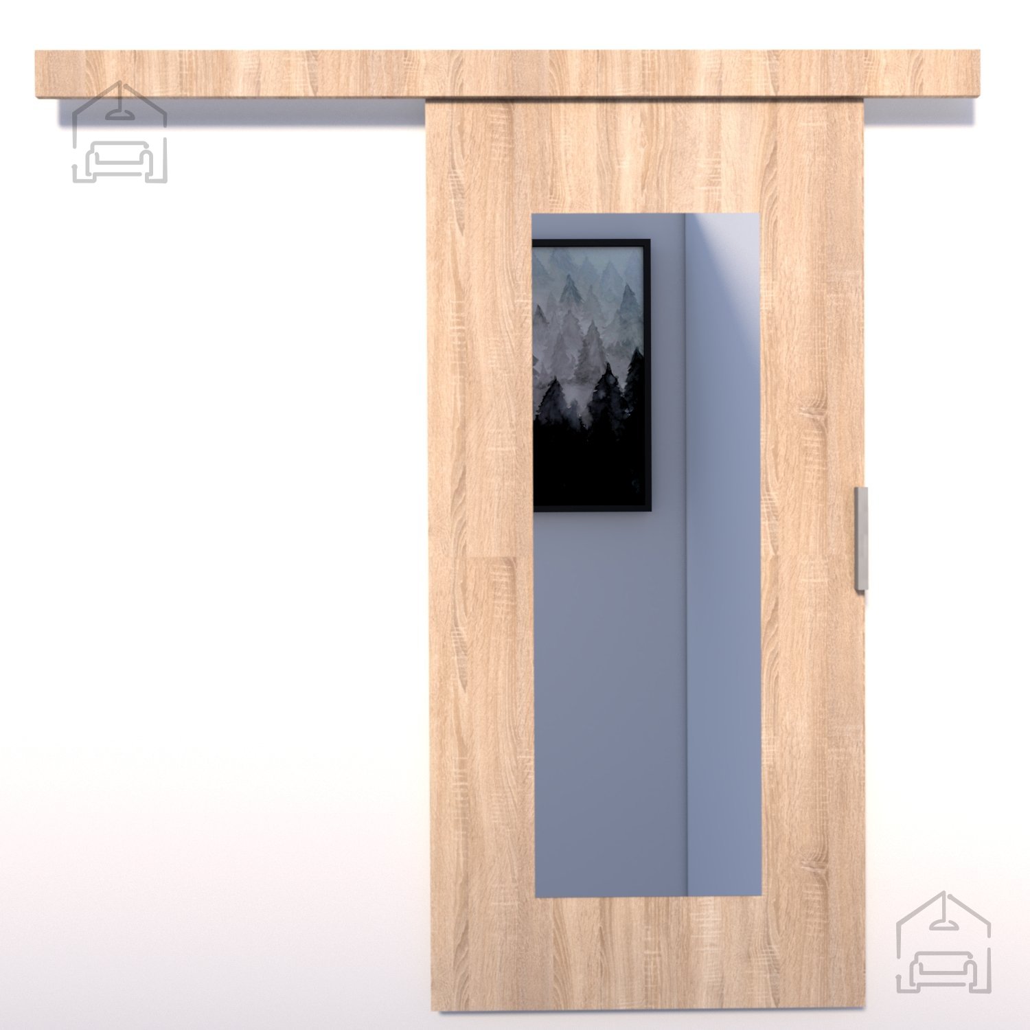 Die Tür besteht aus einer 16 mm starken Spanplatte, die für Stabilität und Langlebigkeit sorgt. Die Oberfläche in Sonoma-Eiche ist der natürlichen Holzstruktur nachempfunden und vermittelt ein angenehmes, warmes Raumgefühl – passend zu modernen, skandinavischen oder klassischen Einrichtungen. Der stabile Aluminiumgriff mit 28 mm Durchmesser verleiht der Tür einen Hauch von modernem Minimalismus und liegt angenehm in der Hand. Die Laufschienen sind im Set enthalten, wodurch die Montage einfach und schnell erfolgt – ganz ohne zusätzliche Käufe oder aufwendige Anpassungen.