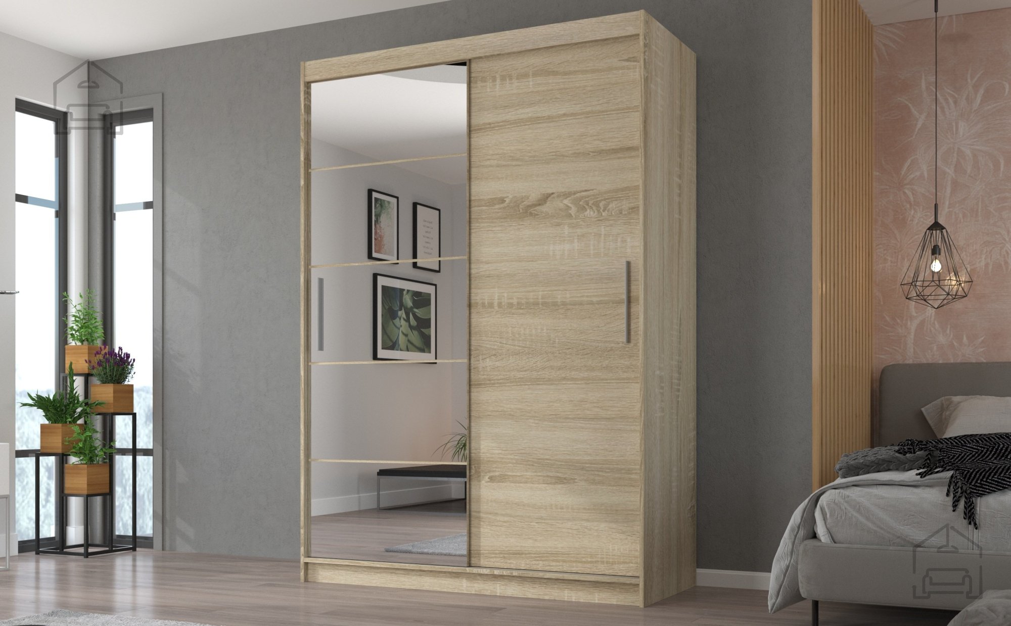Praktisch und elegant zugleich – dieses Möbelstück wurde mit Blick auf moderne Wohnräume entworfen. Wenn Sie eine Lösung suchen, die für Ordnung im Schlafzimmer, Vorzimmer oder Ankleidebereich sorgt, ist dieser geräumige Kleiderschrank eine ausgezeichnete Wahl. Dank der Schiebetüren sparen Sie Platz und schaffen gleichzeitig ein modernes, aufgeräumtes Ambiente. Die Farbe Eiche Sonoma verleiht dem Raum eine natürliche, warme Note, die sowohl zu hellen als auch zu dunkleren Einrichtungen passt.