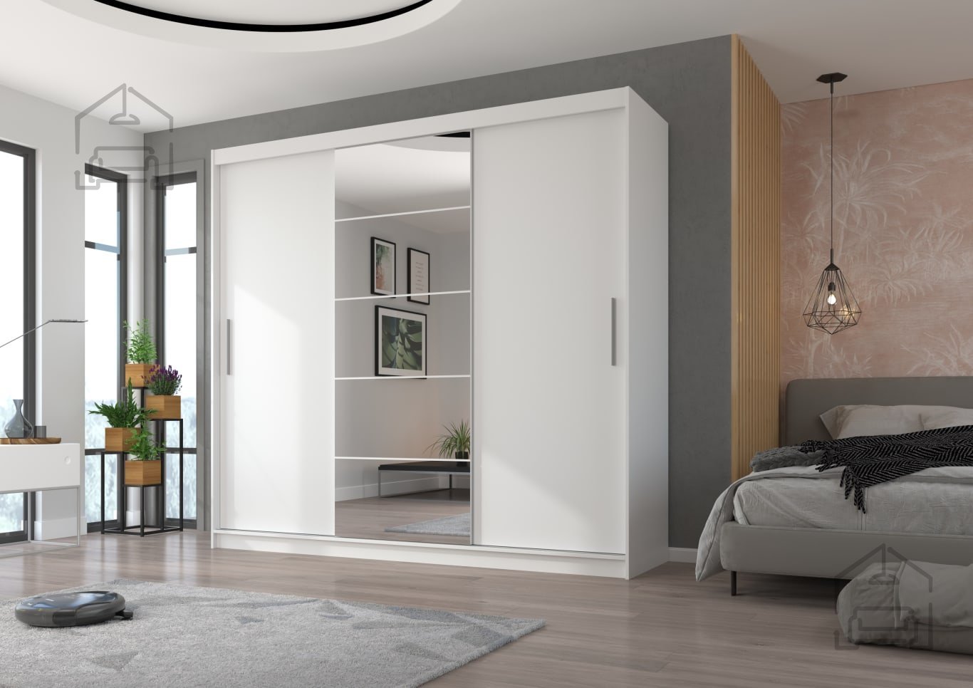 Eine gut durchdachte Raumorganisation ist der Schlüssel zu einem ordentlichen und gemütlichen Zuhause. Wenn Sie eine geräumige, elegante und funktionale Lösung zum Aufbewahren von Kleidung, Schuhen und Accessoires suchen, ist dieser Kleiderschrank eine hervorragende Wahl. Dank seines modernen weißen Farbtons lässt er sich mühelos mit verschiedensten Einrichtungsstilen kombinieren – von minimalistisch über skandinavisch bis hin zu klassisch. Der Schrank vereint ansprechendes Design mit praktischer Funktionalität und wird schnell zu einem unverzichtbaren Möbelstück in Ihrem Schlafzimmer, Vorraum oder Ankleidezimmer.