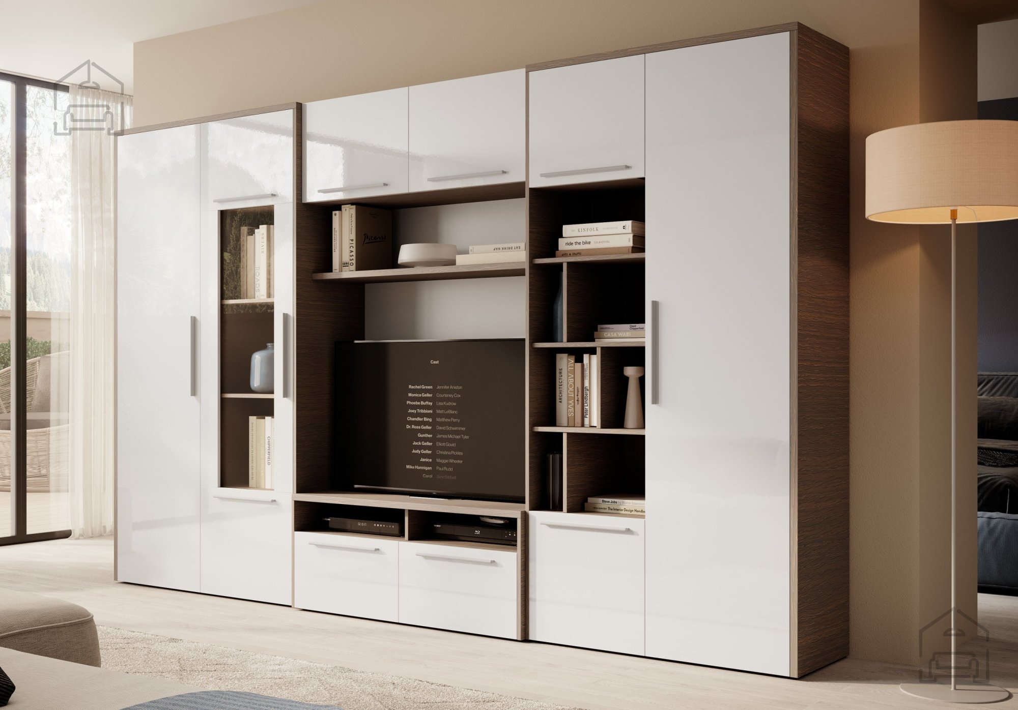 Die Wohnwand Mario lässt sich leicht in unterschiedliche Einrichtungsstile integrieren. In Kombination mit Holzböden betont sie den natürlichen Charakter des Raums, während sie an hellen Wänden für zusätzliche Weite sorgt. Durch ihre modulare Bauweise kann sie sowohl als zentrales Element im Wohnzimmer als auch als Teil einer größeren Wohnkombination aufgestellt werden. Ihre universelle Form ermöglicht außerdem die Kombination mit anderen Möbelstücken der ADRK-Kollektion, um ein stimmiges Gesamtbild zu schaffen.