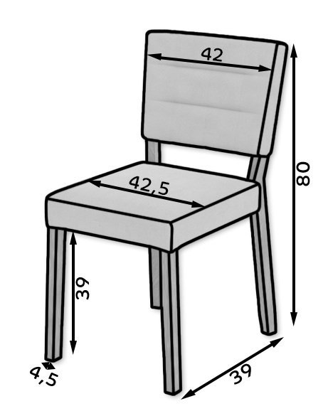 Der Stuhl hat die Maße 80x42 cm und ist mit einer komfortablen Sitzfläche sowie einer praktischen Rückenlehne gestaltet. Mit seinem modernen Erscheinungsbild und den durchdachten Abmessungen bietet der Essstuhl Rodos 80 Sitzkomfort und Stil ohne Kompromisse. Die Gesamthöhe beträgt 80 cm, die Sitzhöhe liegt bei 39 cm – ideal für bequemes Sitzen mit optimaler Unterstützung.
