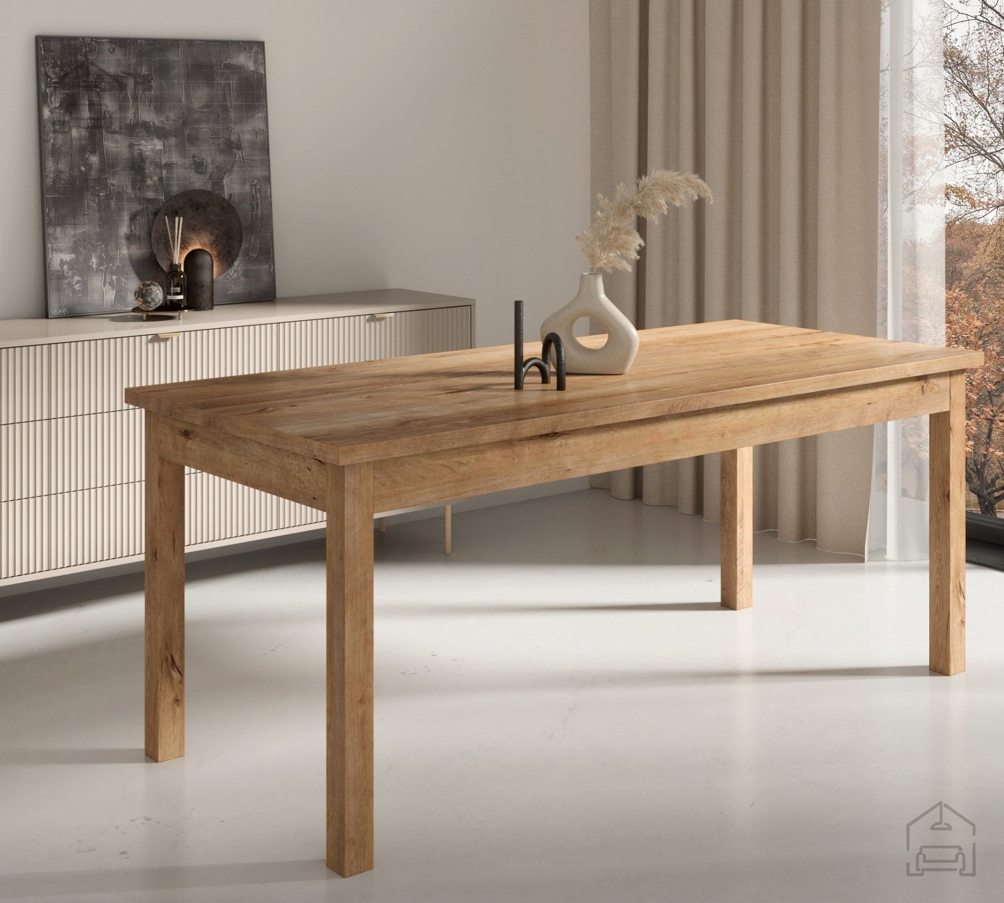 Die Grundgröße von 140 x 80 cm ist ideal für den Alltag. Wenn Sie jedoch mehr Platz benötigen, lässt sich der Tisch im Handumdrehen auf 180 x 80 cm erweitern. So finden auch zusätzliche Gäste bequem Platz, ohne dass dabei Stabilität oder Ästhetik leiden. Der Auszugsmechanismus ist einfach zu bedienen – eine schnelle und praktische Lösung, wann immer eine größere Tischfläche gefragt ist.