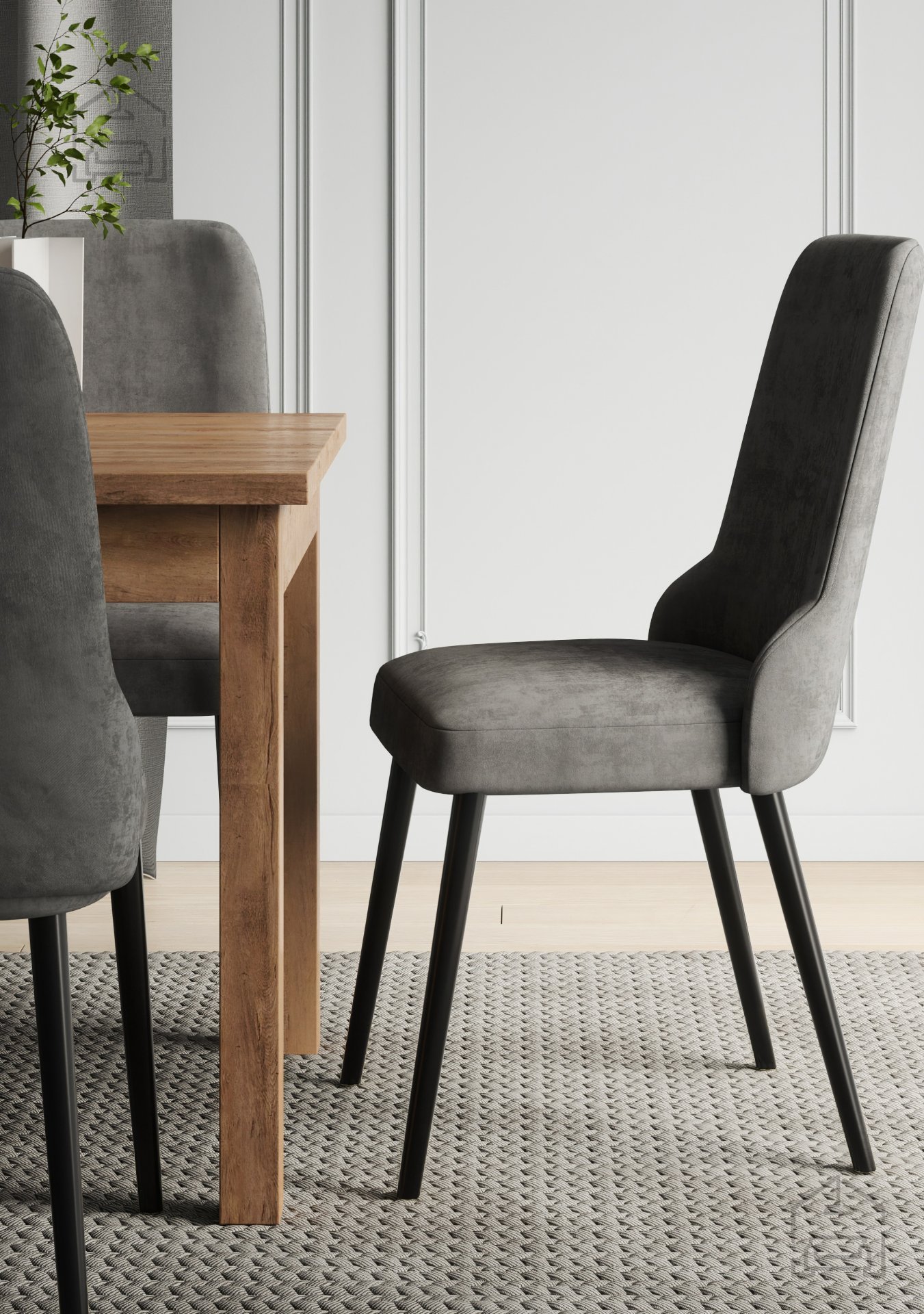 In einem modernen Zuhause ist das Esszimmer längst mehr als nur ein Ort zum Essen – es ist das Herz des Familienlebens, ein Raum für Gespräche, gemeinsame Momente und schöne Erinnerungen. Deshalb sollte die Einrichtung nicht nur gut aussehen, sondern auch hochwertig, bequem und robust sein. Genau diese Eigenschaften vereint das Esszimmer-Set Rodos 83, das mit seiner gelungenen Kombination aus warmem Holz und modernem, industriell angehauchtem Design ein harmonisches Gleichgewicht zwischen Gemütlichkeit und zeitgemäßem Stil schafft.