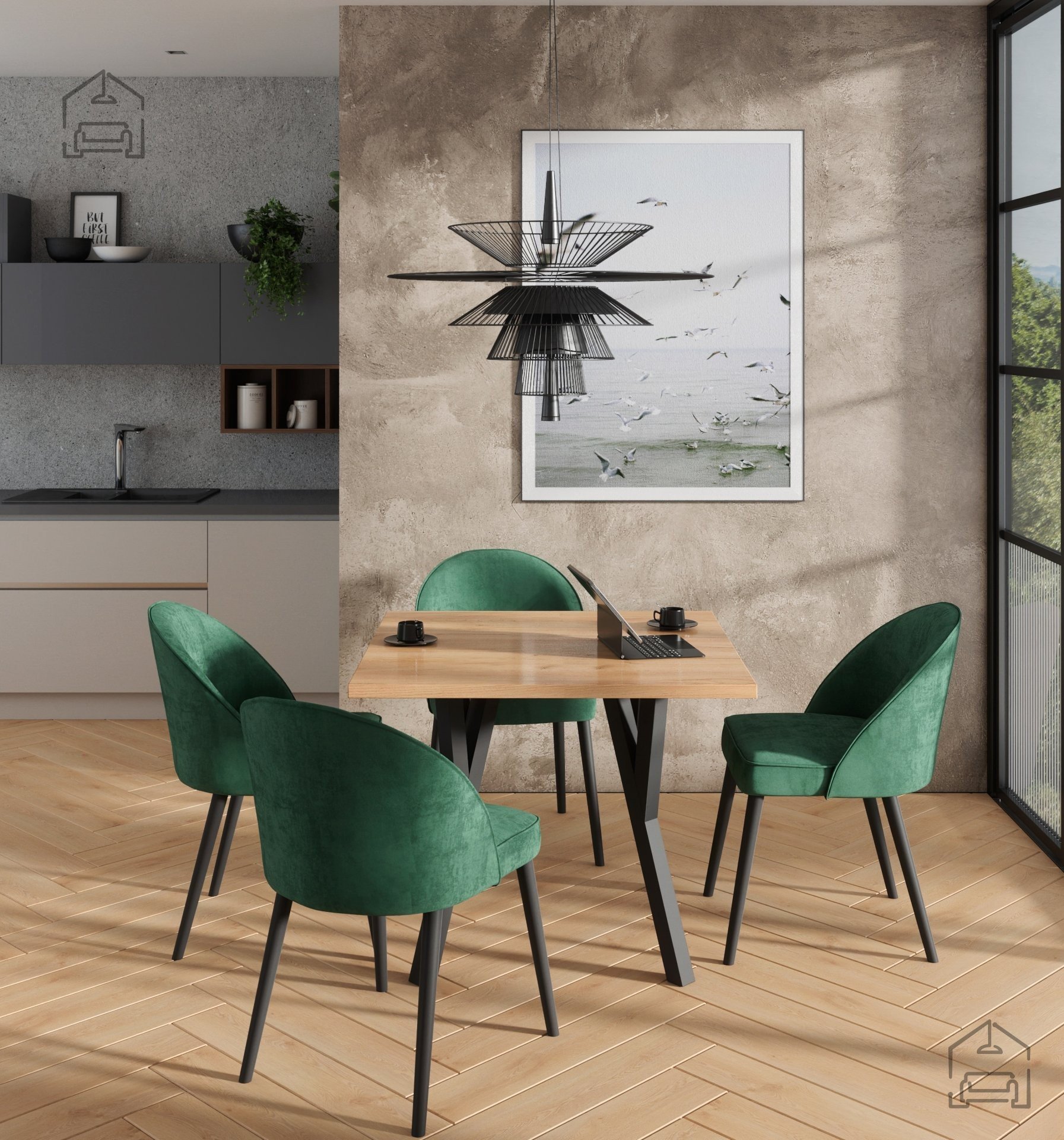 Die modern gestaltete Esszimmerkollektion Rodos 84 besteht aus einem Tisch und vier Stühlen. Hochwertige Materialien sorgen für Langlebigkeit und eine lange Nutzungsdauer.