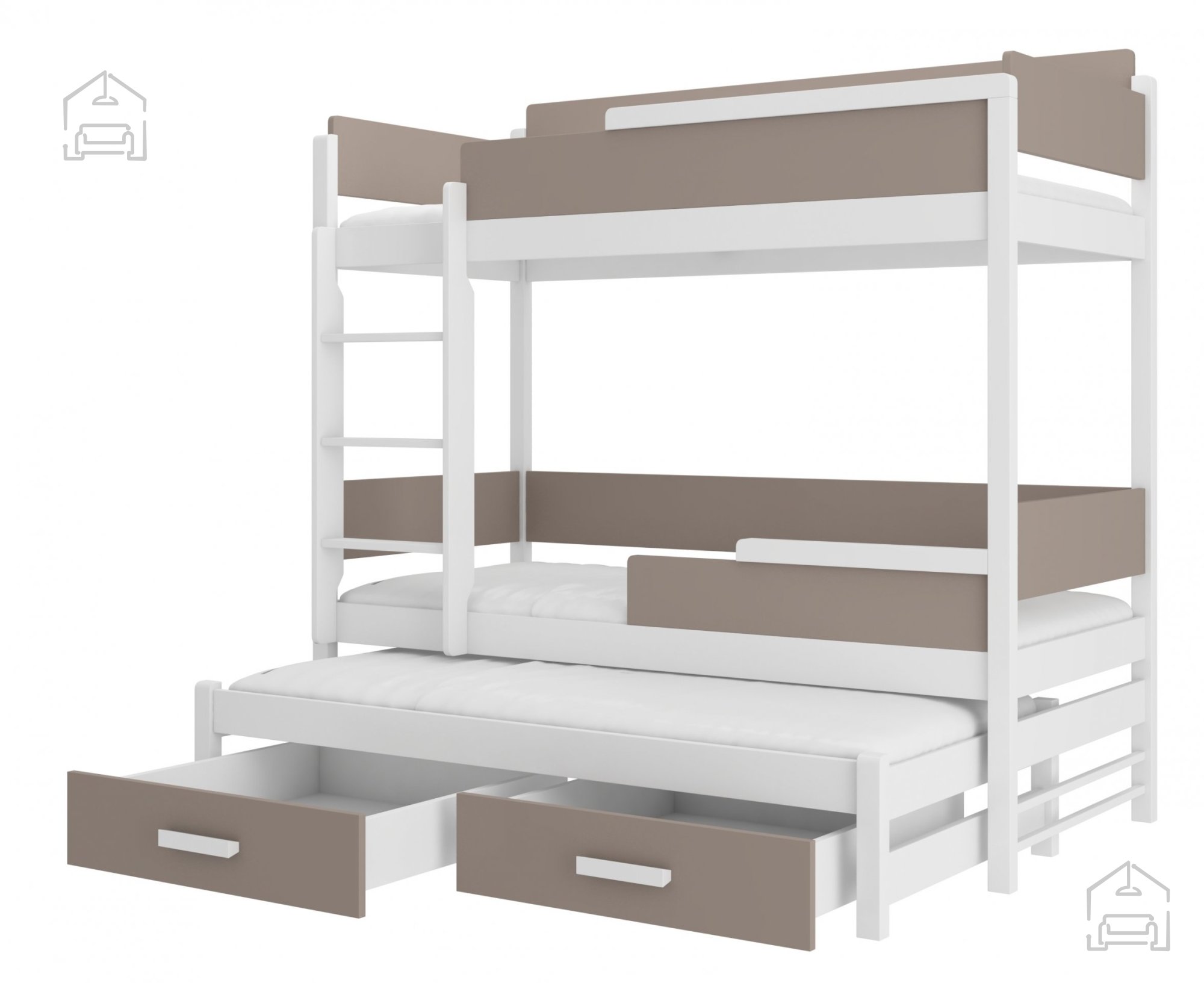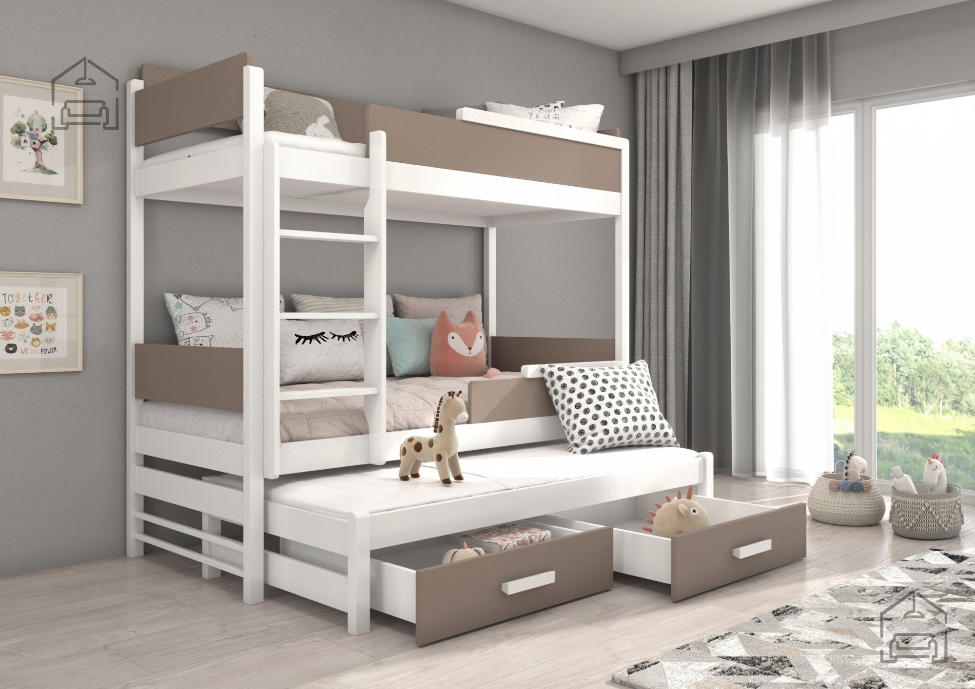 Schaffen Sie für Ihre Kinder einen gemütlichen, sicheren und funktionalen Rückzugsort mit einem eleganten Etagenbett, das modernes Design, praktische Nutzung und hochwertige Verarbeitung vereint. Die Farbkombination Weiß/Tartufo bringt Frische und Wärme in jedes Kinderzimmer und lässt sich wunderbar mit verschiedenen Einrichtungsstilen kombinieren. Durch die durchdachte Konstruktion wird der vorhandene Platz optimal genutzt – besonders vorteilhaft in kleineren Räumen, wo jeder Zentimeter zählt.