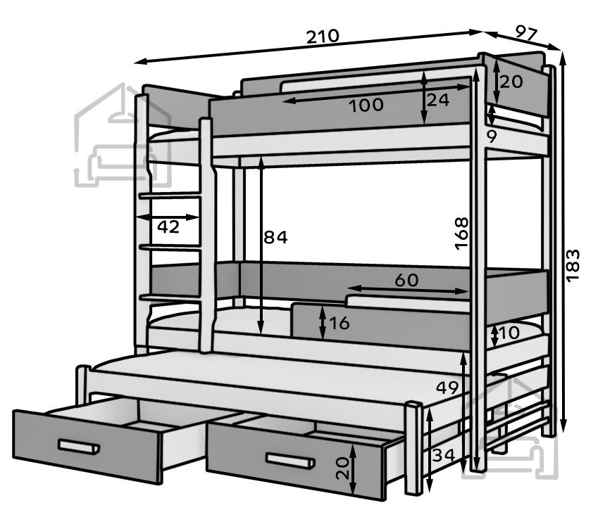 Dieses Etagenbett ist nicht nur ein Möbelstück, sondern eine kluge Investition in Komfort, Funktionalität und ein stilvolles Kinderzimmer. Wenn Sie Wert auf Sicherheit, Praktikabilität und modernes Design legen, ist dieses Modell die perfekte Wahl. Damit schaffen Sie eine angenehme, aufgeräumte Umgebung, in der sich Ihre Kinder rundum wohlfühlen – tagsüber wie auch nachts.
