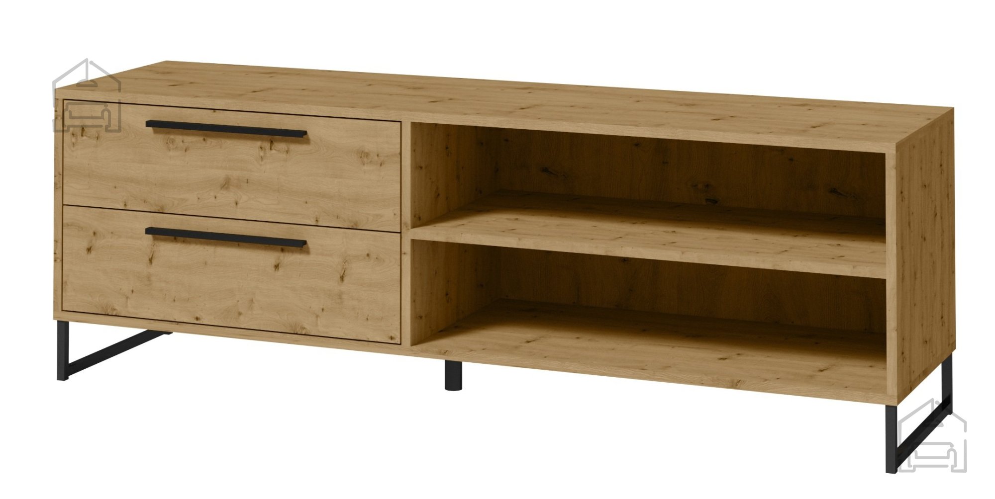 Die elegante und zugleich funktionale TV-Kommode vereint modernes Design mit praktischer Alltagstauglichkeit und wird rasch zum unverzichtbaren Bestandteil Ihres Wohnzimmers. Mit den Maßen 150x40x50,8 cm bietet sie ein ausgewogenes Verhältnis zwischen Kompaktheit und Stauraum – ideal für unterschiedlichste Einrichtungsstile, von minimalistisch bis industriell. Die warme Farbkombination aus Artisan-Eiche und kontrastierendem schwarzem Metall sorgt für ein behagliches Wohngefühl und verleiht dem Raum zugleich einen Hauch moderner Eleganz.