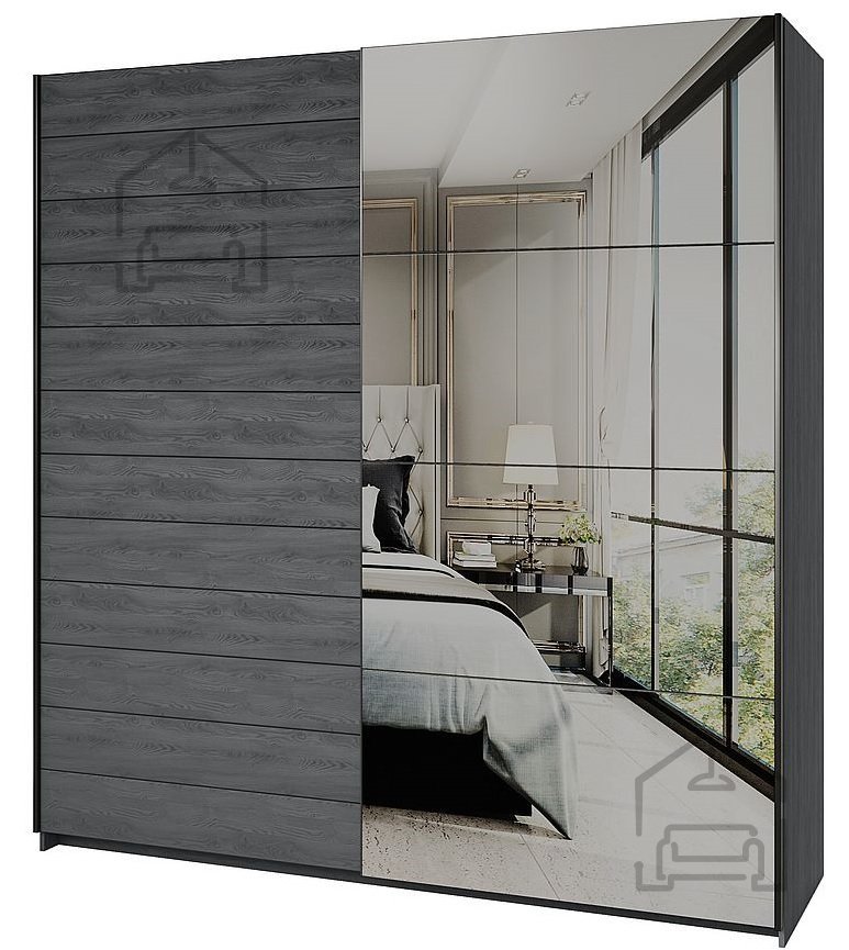 Der Kleiderschrank Galaxy besteht aus einer hochwertigen laminierten Platte mit 16 mm Stärke, was für Stabilität und eine lange Lebensdauer sorgt. Die Oberfläche in Eiche Carbon verleiht dem Möbelstück eine elegante Note und lässt sich wunderbar mit modernen Einrichtungsstilen kombinieren. Ein besonderes Highlight sind die zwei Schiebetüren mit Spiegel, die nicht nur praktisch sind, sondern auch den Raum optisch vergrößern.