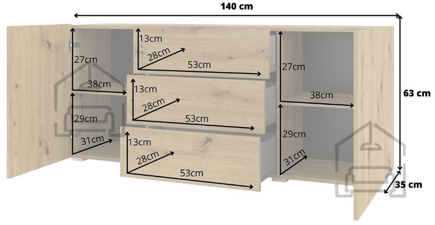 Ob für das Wohnzimmer oder das Schlafzimmer – die Kommode Ava ist in jedem Fall eine ausgezeichnete Wahl. Wir sind sicher, dass sie Ihre Erwartungen übertreffen und rasch zu einem unverzichtbaren Bestandteil Ihres Zuhauses wird.